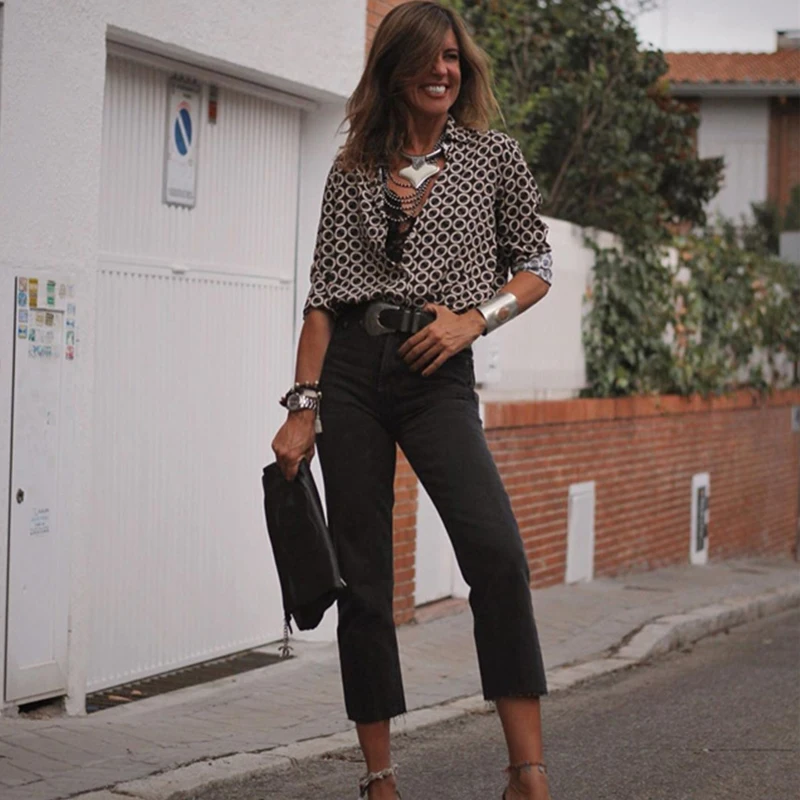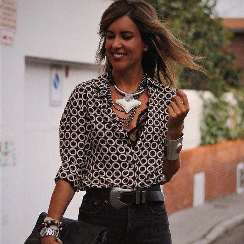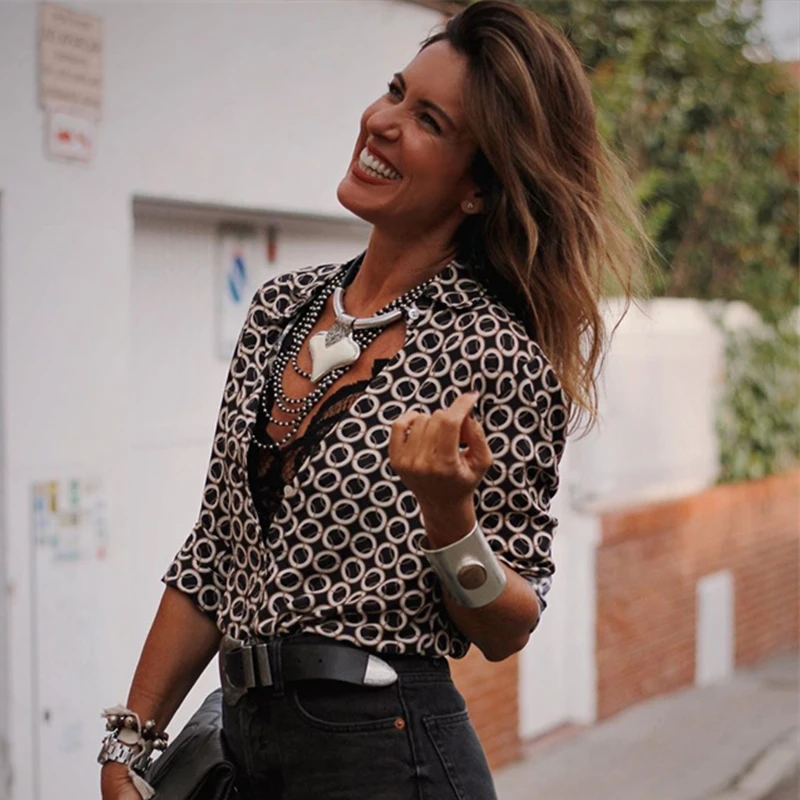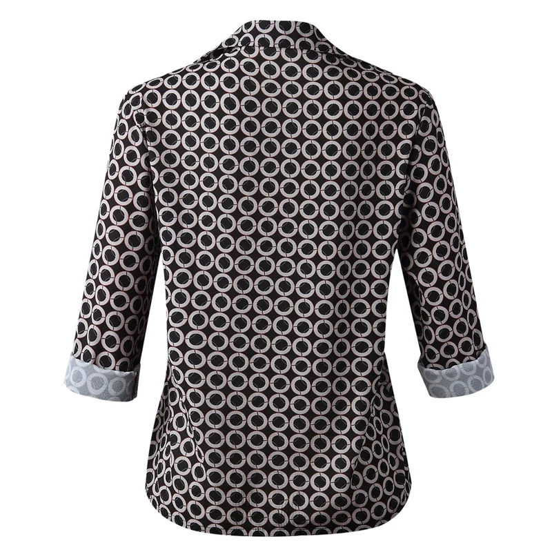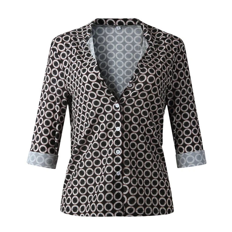 2021 New Polka Dot Blouse Women Turn Down Collar 3/4 Sleeve Shirts Plus Size Clothes Streetwear Black Blouse Women XXL