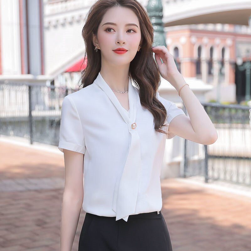 Blouse Women 2021 Summer Chiffon Shirts Blouse Tops Fashion Casual V-Neck Loose short sleeve Blouses Femme Blusa plus size