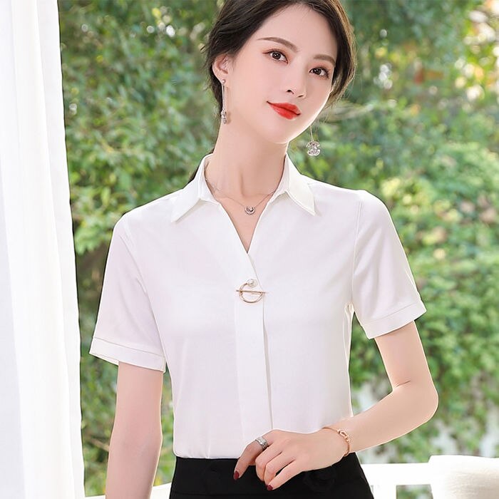 Chiffon Blouse Women 2021 Summer Chiffon Shirts Blouse Tops Fashion Casual V-Neck short sleeve Blouses Femme Blusa plus size