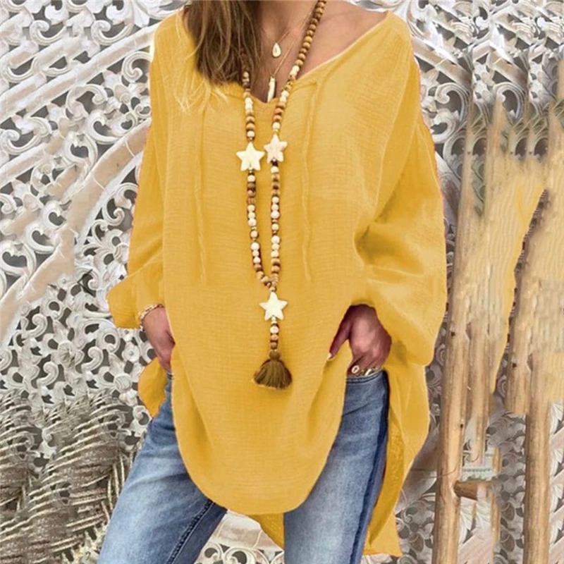 Cotton Womens Tops And Blouses Plus Size Long Sleeve V Neck Female Tunic Beach Shirts Casual Puff Sleeve