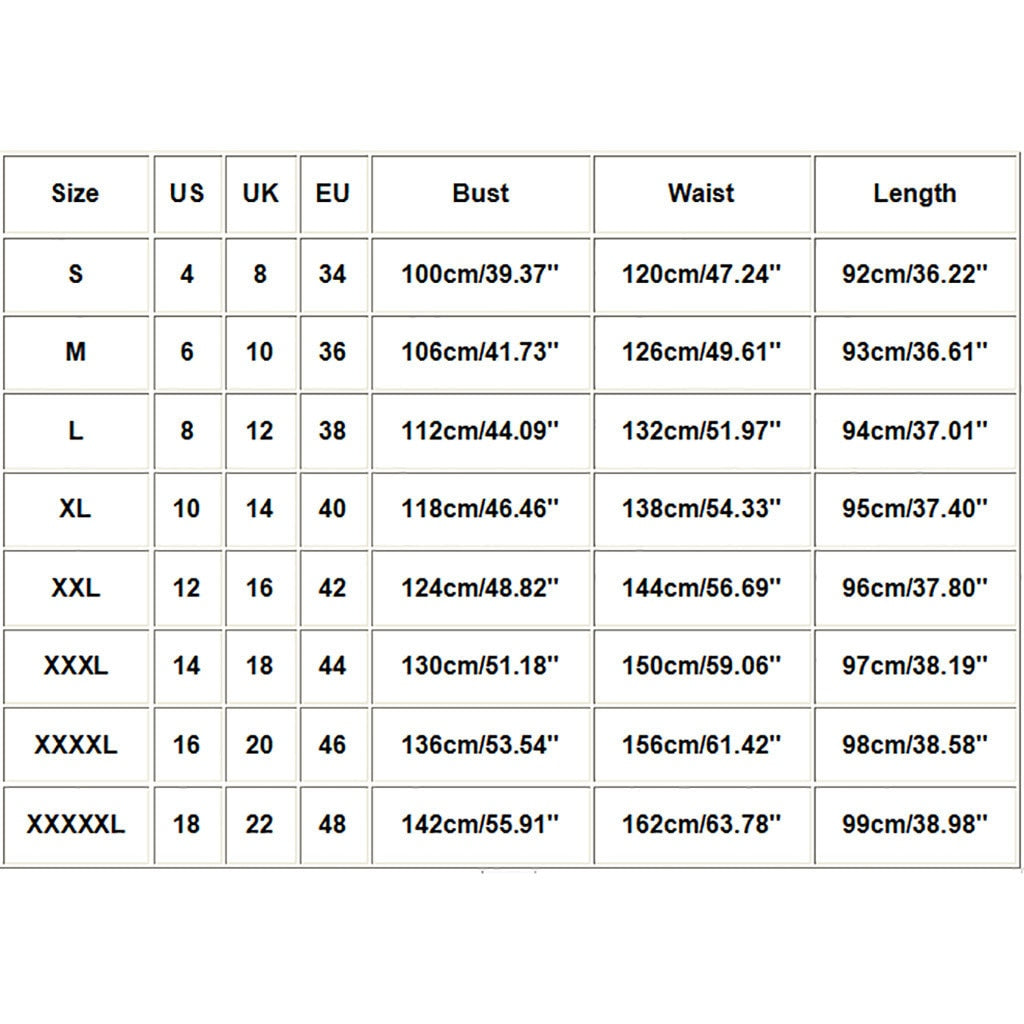 What you get: 1 x Women Dress| Size | US | UK | EU | Bust | Waist | Length |