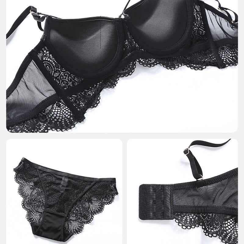 Europe Lace Flowers Embroidery Underwear Sexy Hollow Thicken 3/4 Cup Push Up Bra Set Women Plus Size Brassiere With Panties Sets