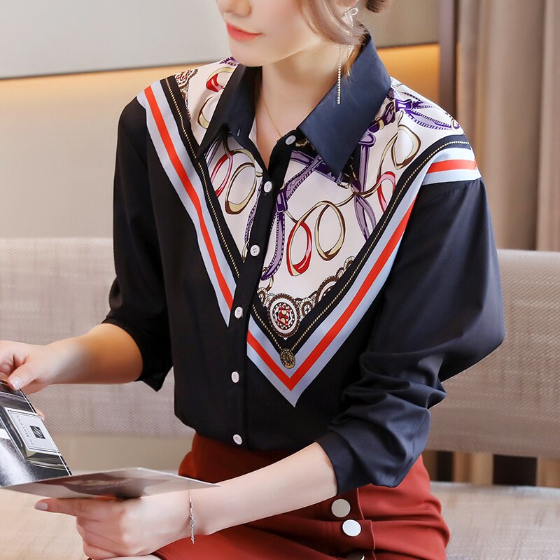Fashion Print Women Chiffon Shirt New 2021 Spring Autumn Turn-Down Collar Blouses Plus Size Loose Tops Clothing