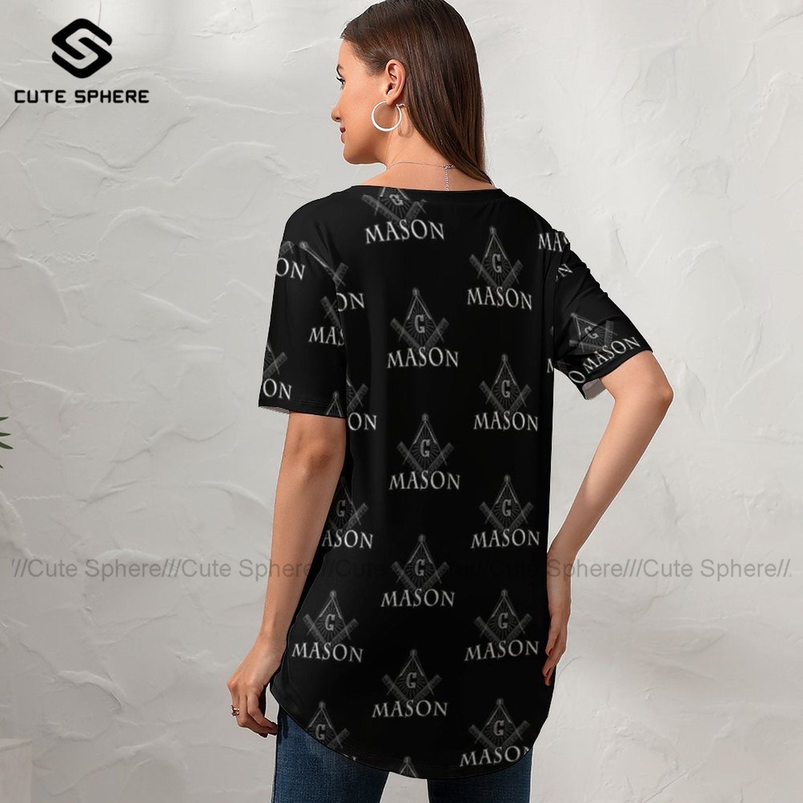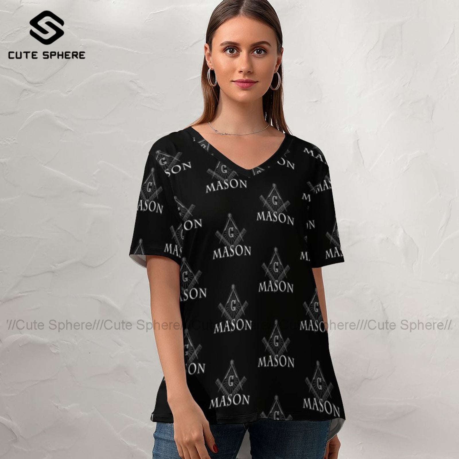 Freemason T-Shirt Ladies New Fashion Casual T Shirt V Neck Pattern Short-Sleeve Tee Shirt Plus Size