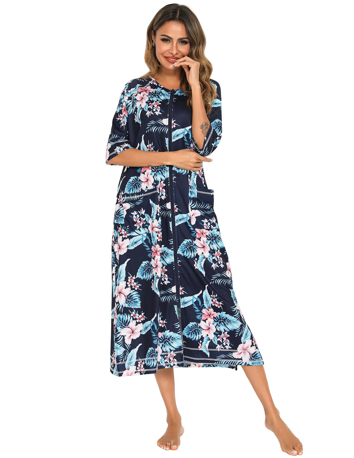 Long Dress Homewear Pregnant Women Nursing Skirt Loose Pajamas Three Quarter Sleeve Plus Size Nightgown
