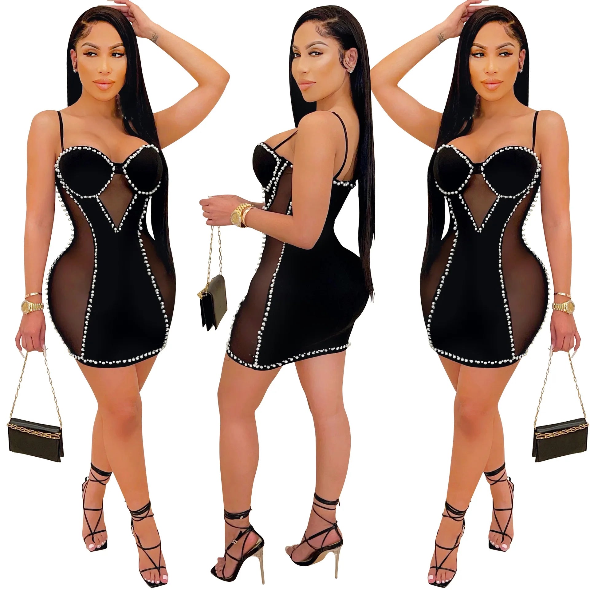 Mesh Black Dress Sexy Transparent Women Night Club Sleeveless See Through Dress Women Summer Plus Size Sexy Club Dresses