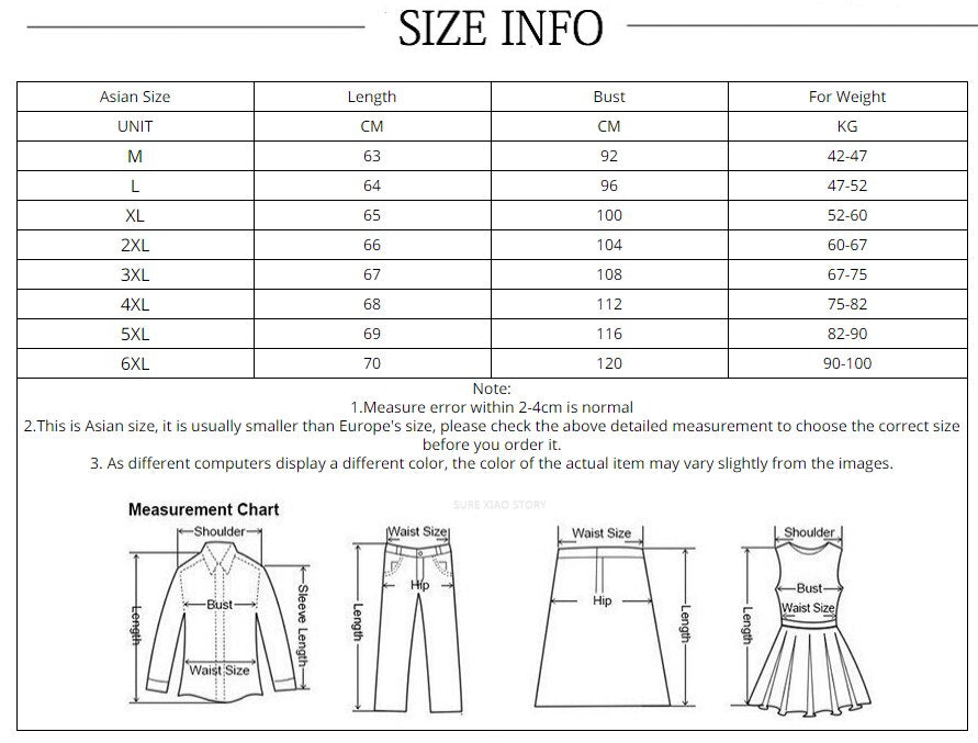 |   Note: 1.Measure error within 2-4cm is normal 2.This is Asian size, it is usually smaller than Europe's size, please check the above detailed measurement to choose the correct size before you order it. 3. As different computers display a different color, the color of the actual item may vary slightly from the images.