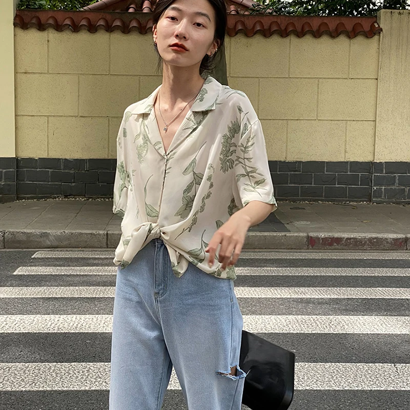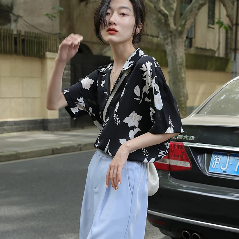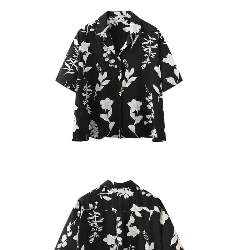 New Women Polo Neck Short Sleeve Office Lady Blouse 2021 New Summer Print Buttons Fashion Style Shirt Outwear Plus Size