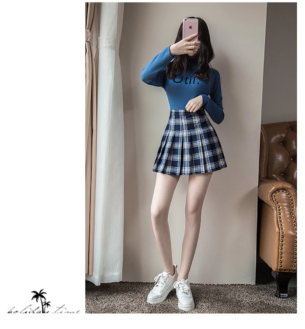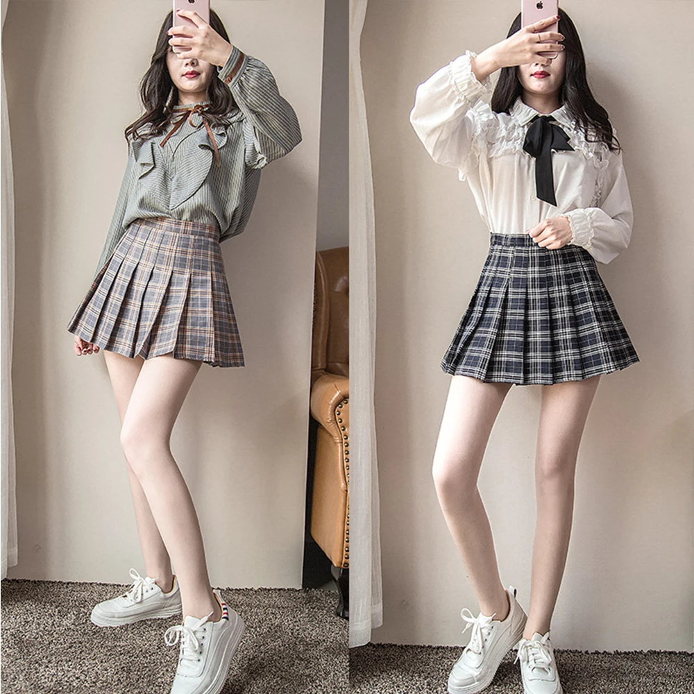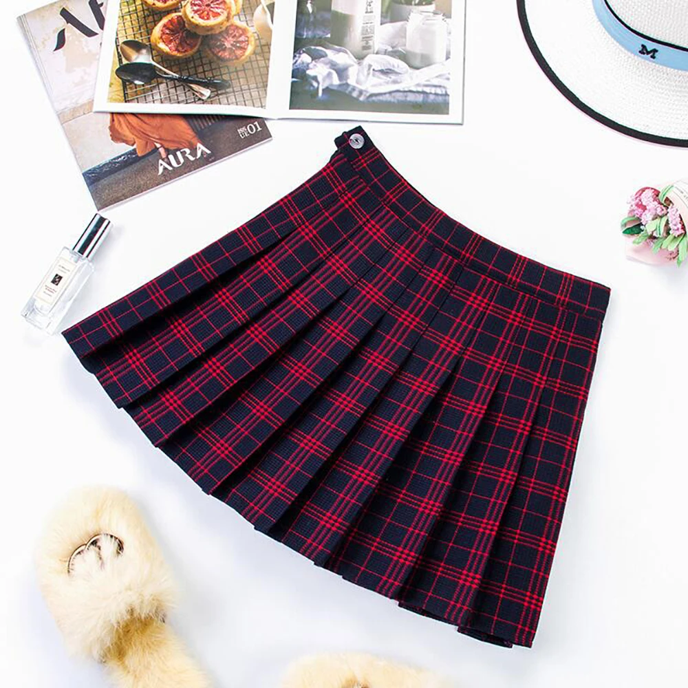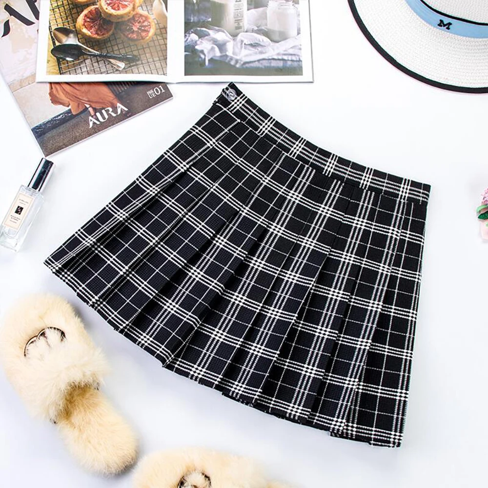Plus Size Harajuku Short Skirt New Korean Plaid Skirt Women Zipper High Waist School Girl Pleated Plaid Skirt Sexy Mini Skirt
