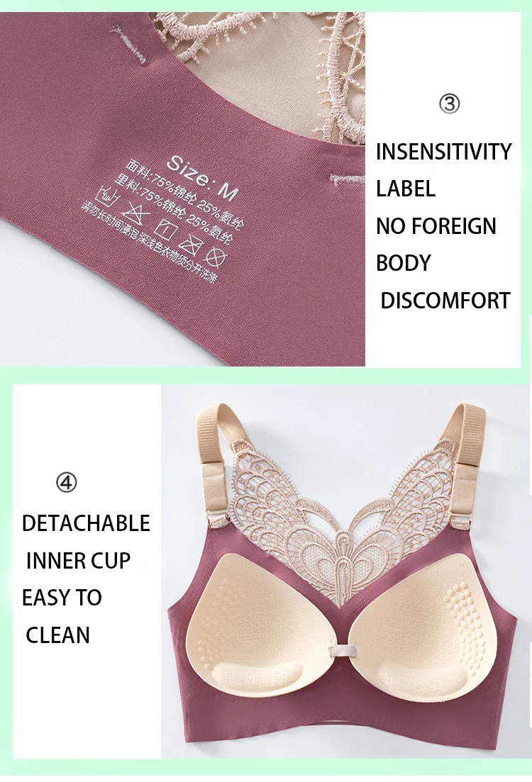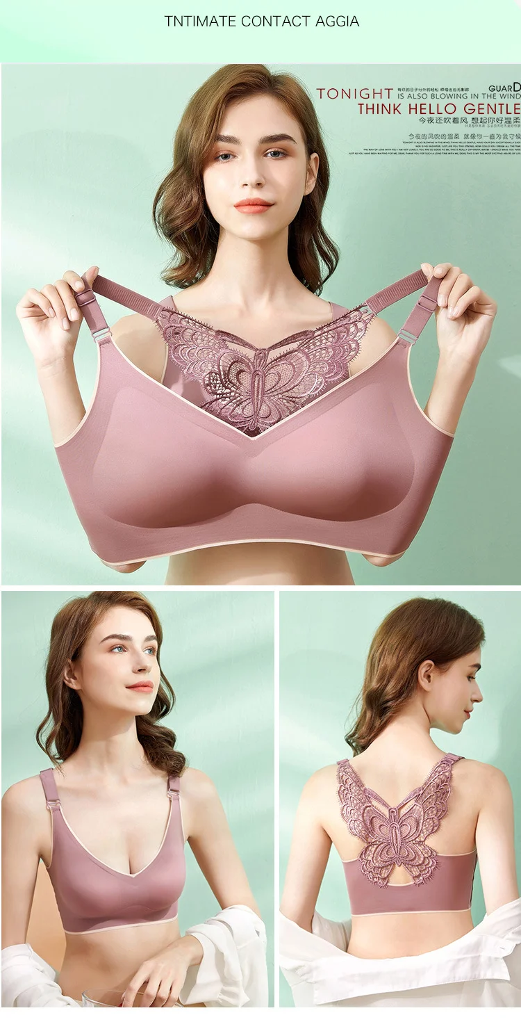 Plus Size Lace Bra Bow Large Back Underwear Big Chest Minimizer Push Up Seamless Ultra Thin Floral One Piece Bra Oversized Bras
