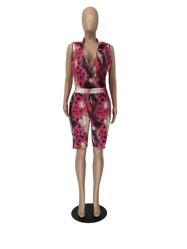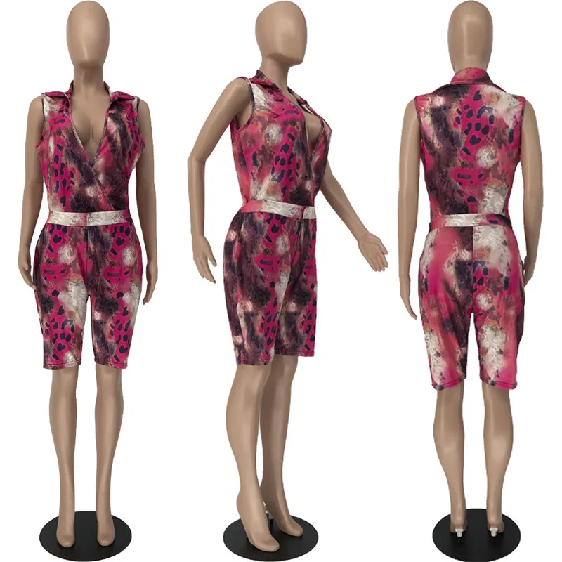 Plus Size Women Clothing Two Piece Set  Fashion Sexy  Print Patchwork Jumpsuit and Shorts Sets Multi Wear Wholesale Dropshipping