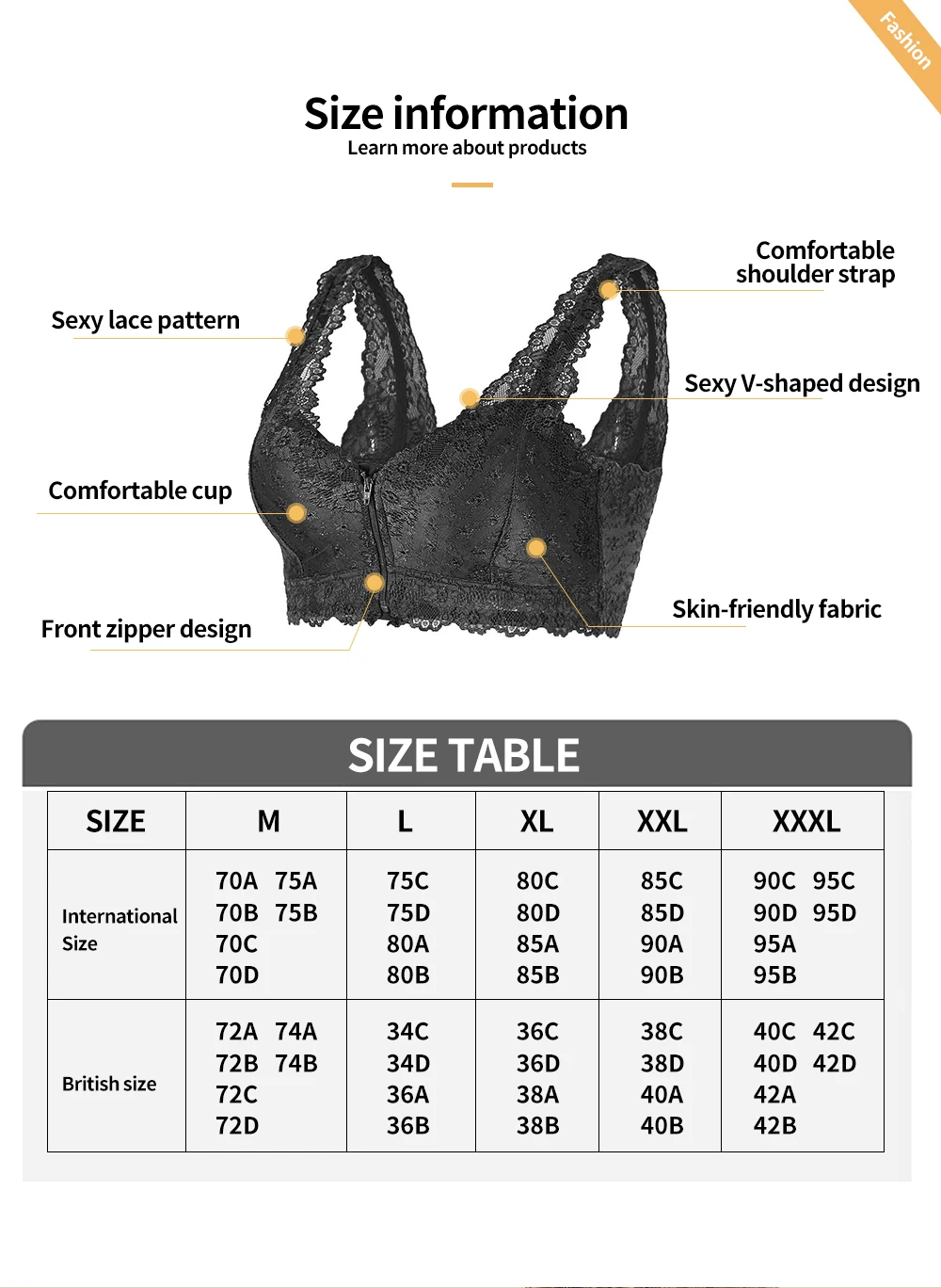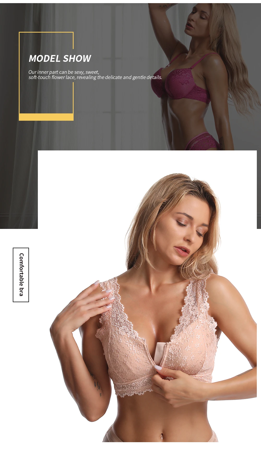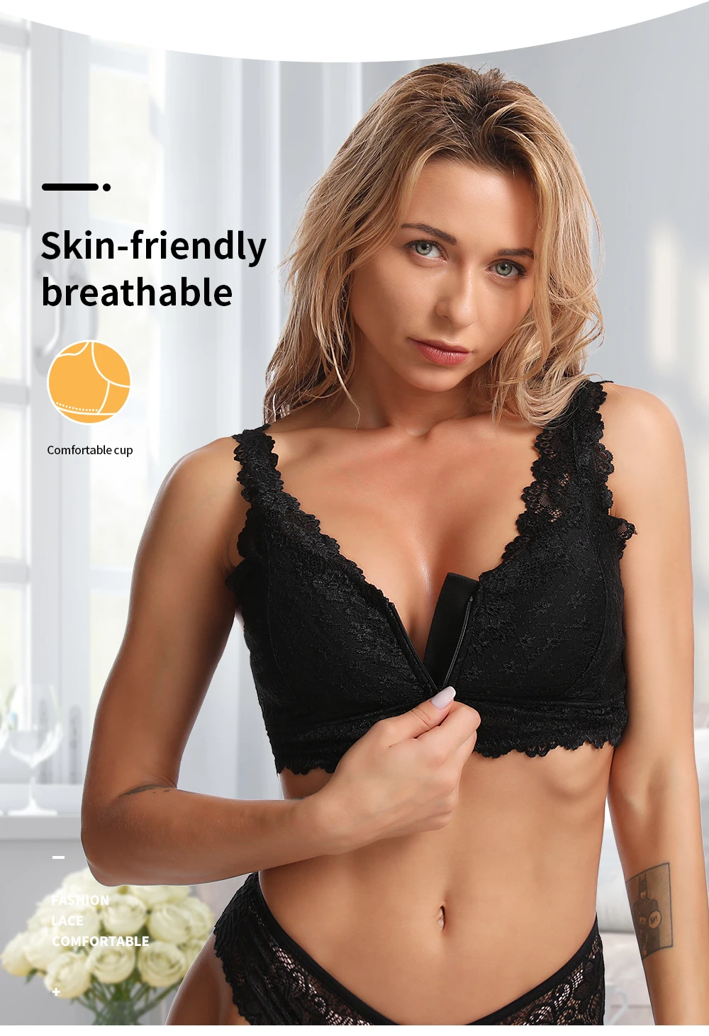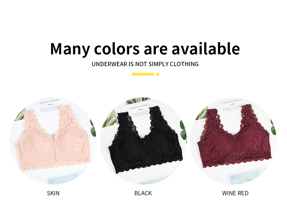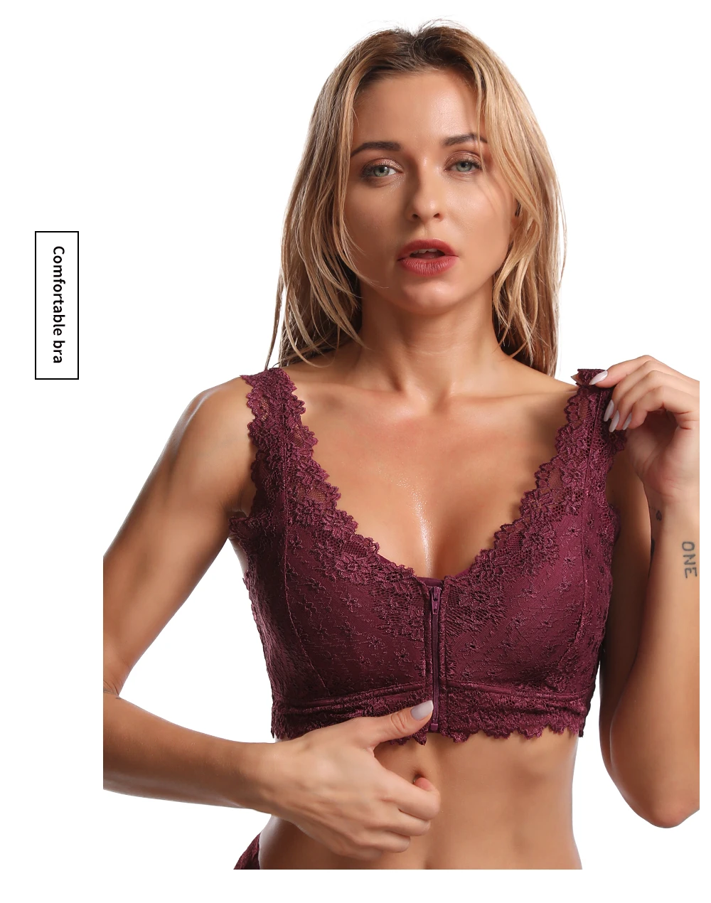 Push Up Bra Sexy Women's Underwear Lace Women's Bra Plus Size Bra Front Zipper Wireless Bras Bralette Top soutien gorge femme