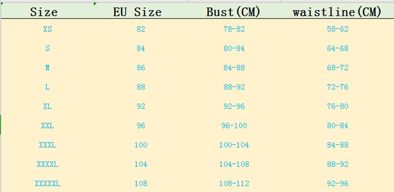 Size comparison table The size of this table corresponds to the suitable body size
