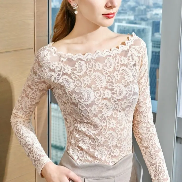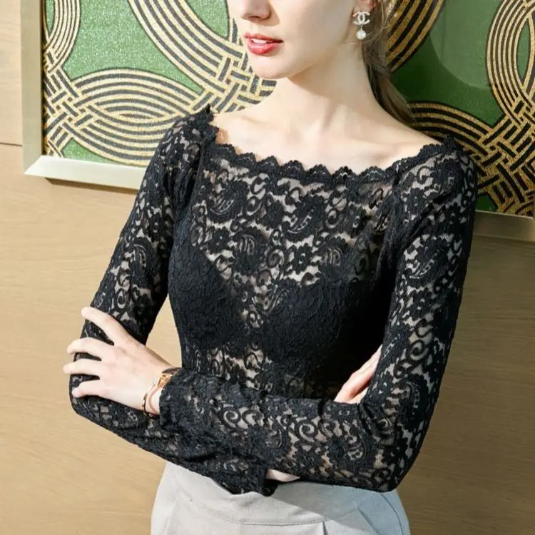Sexy Lace Blouse Shirt Women Long Sleeve Floral White Blouses Female Tops Elegant Fashion Blouse Shirts blusas femme plus size
