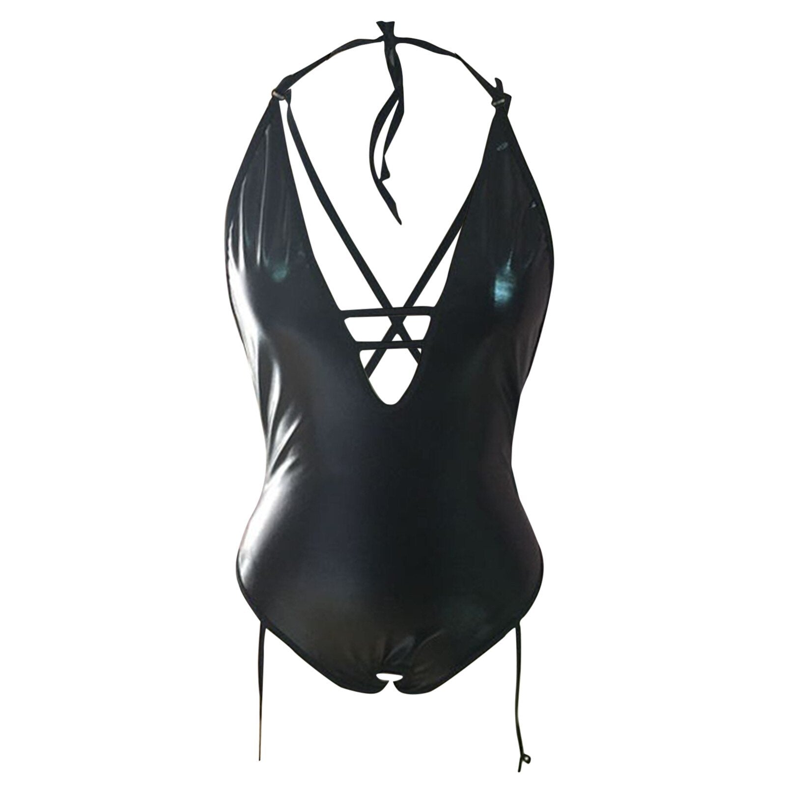Sexy Lingerie Plus Size Halter V-neck Leather Sex Teddies Women's Underwear Lenceria Sensual Mujer Erotic Backless Lingerie Porn