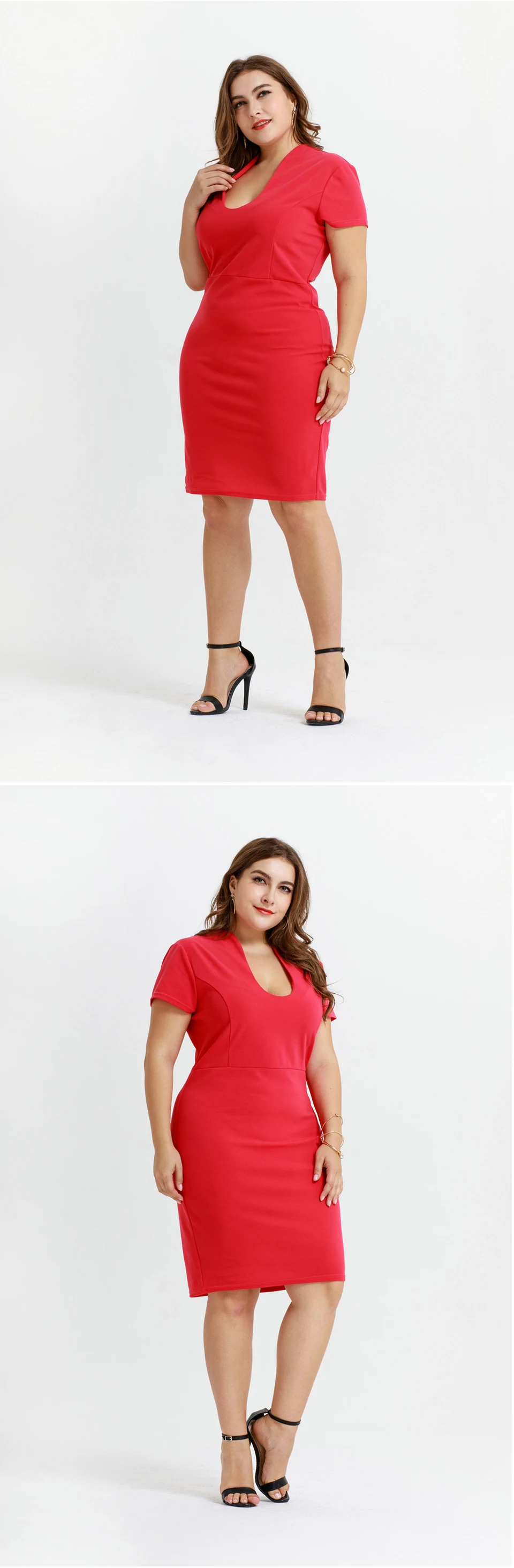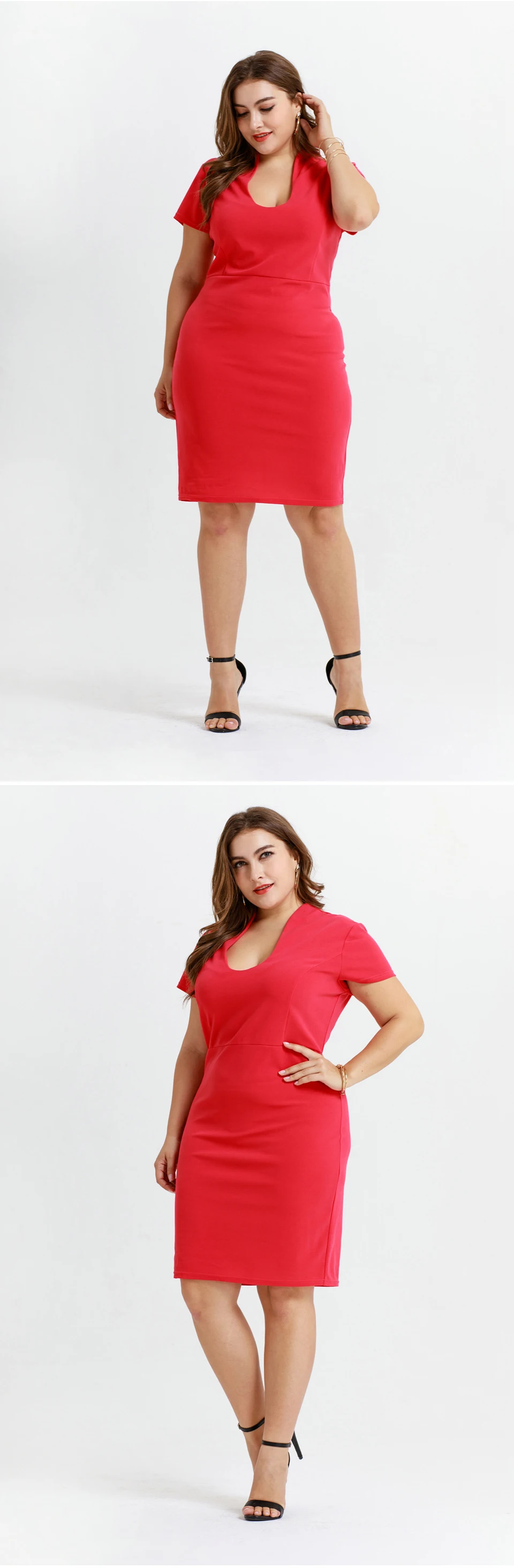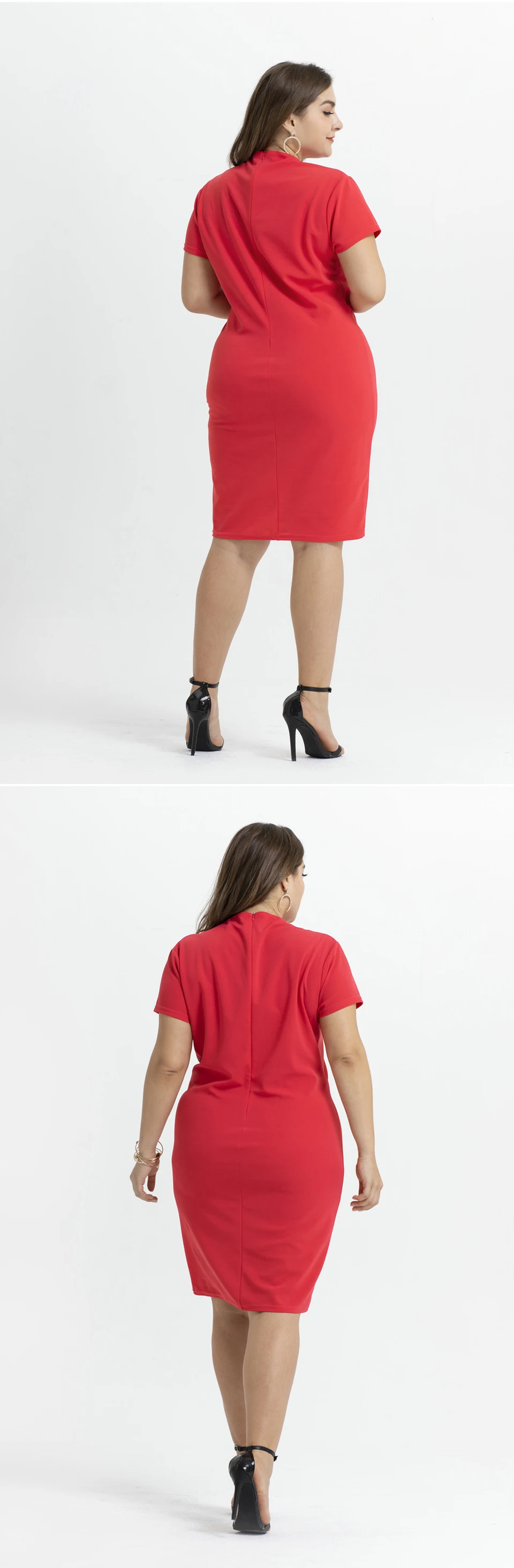 Summer 2021 Plus Size Dress Fashion Sexy Slim OL Style Short Sleeve Red Vestidos Office Elegant Dress Retro Women's Knee Dress