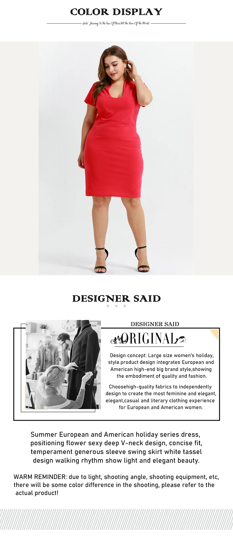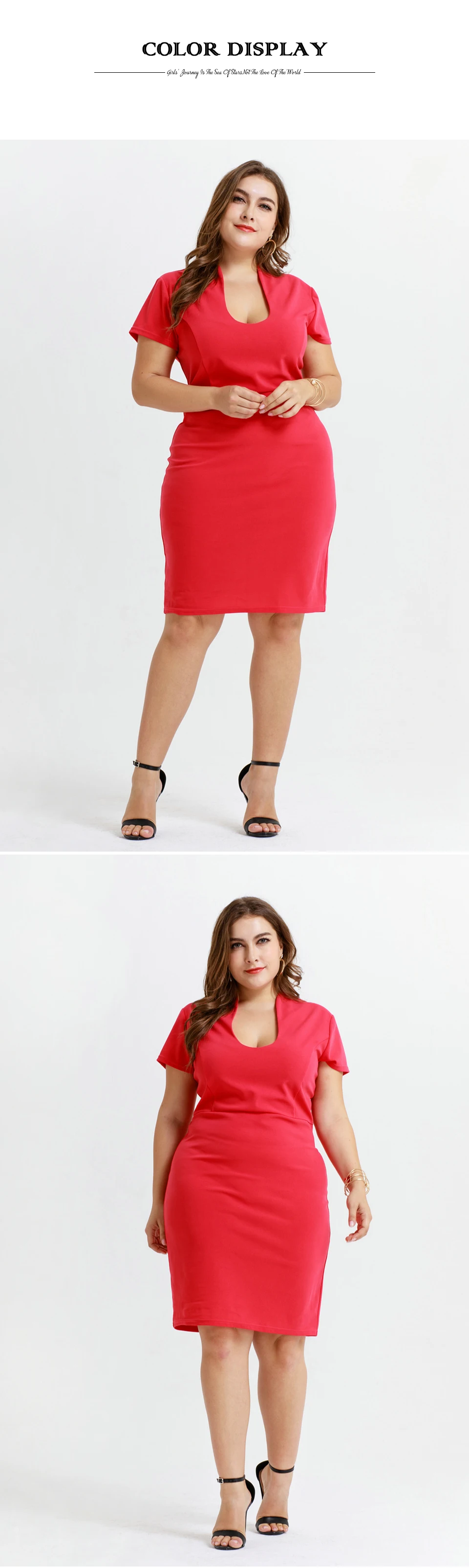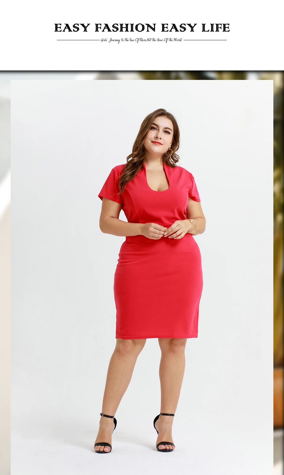 Summer 2021 Plus Size Dress Fashion Sexy Slim OL Style Short Sleeve Red Vestidos Office Elegant Dress Retro Women's Knee Dress