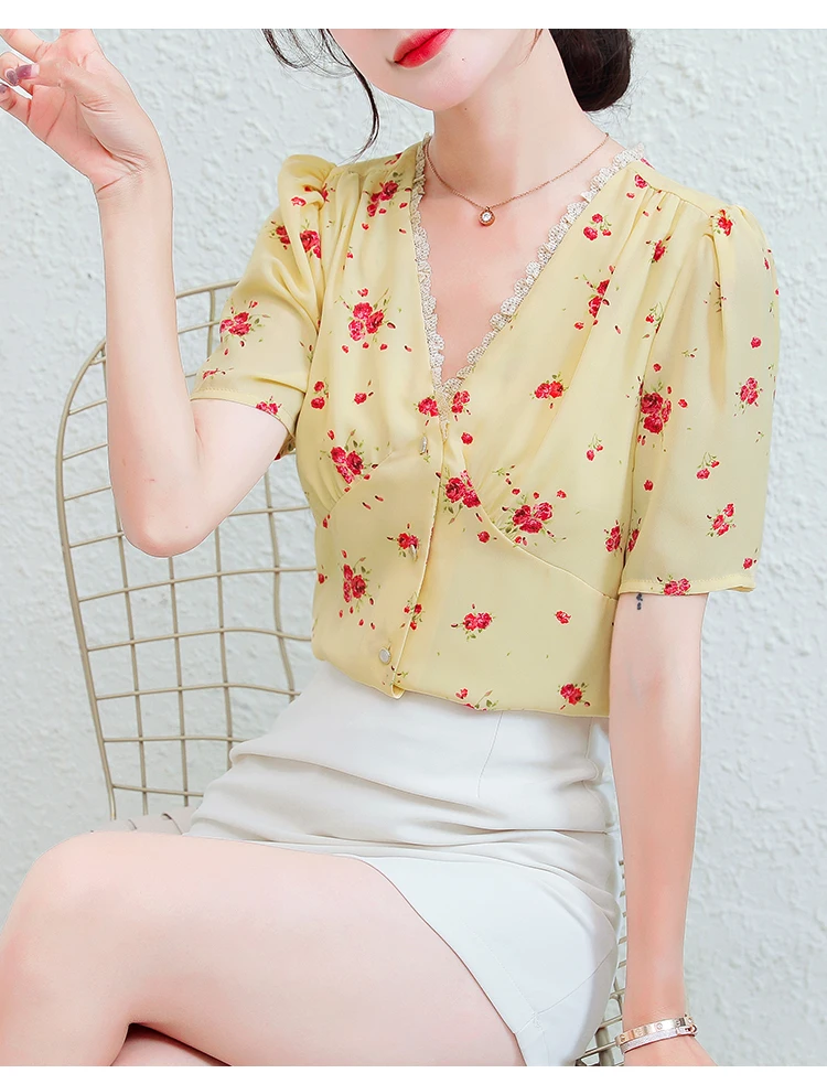 Summer Korean Fashion Silk Woman Shirts Satin Office Lady Short Sleeve Buttoned Shirt Plus Size XXL Ladies Tops Blouse