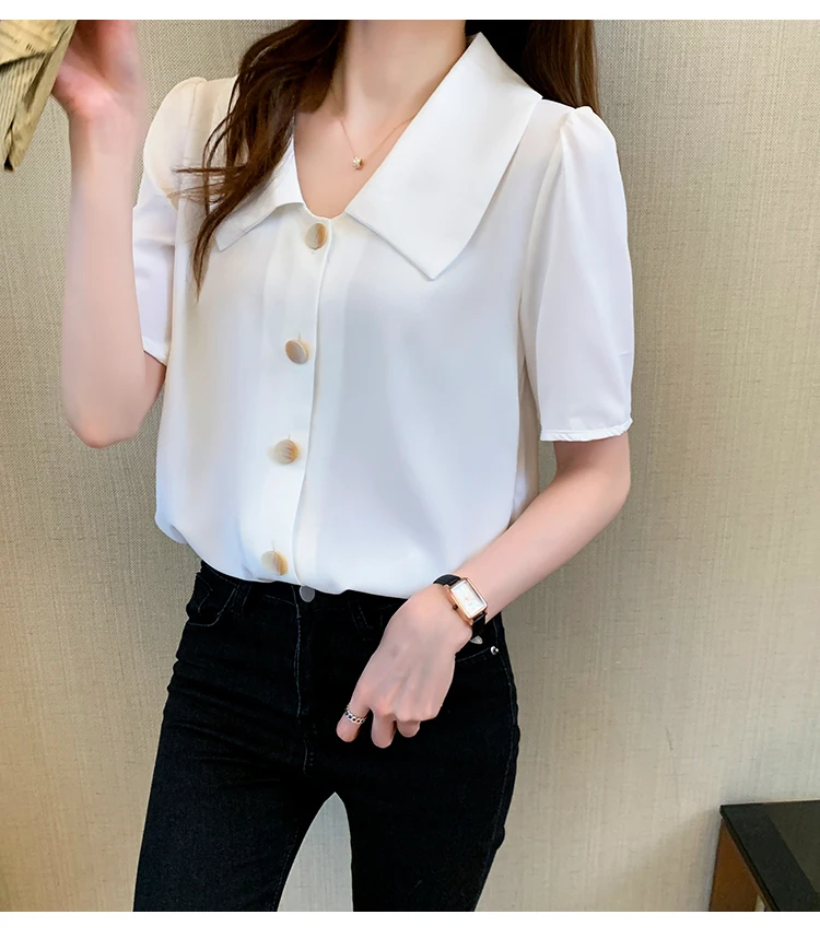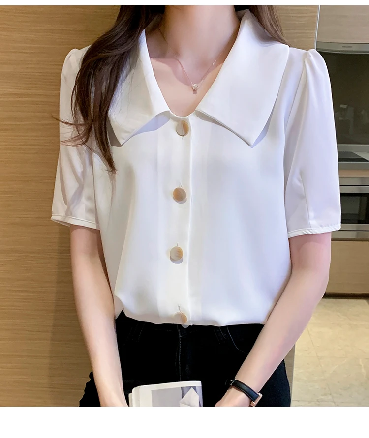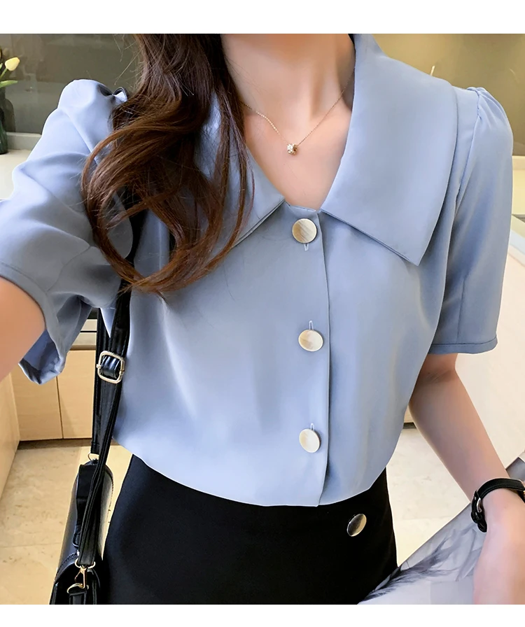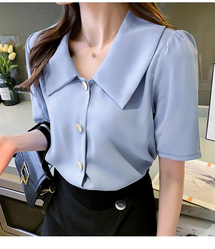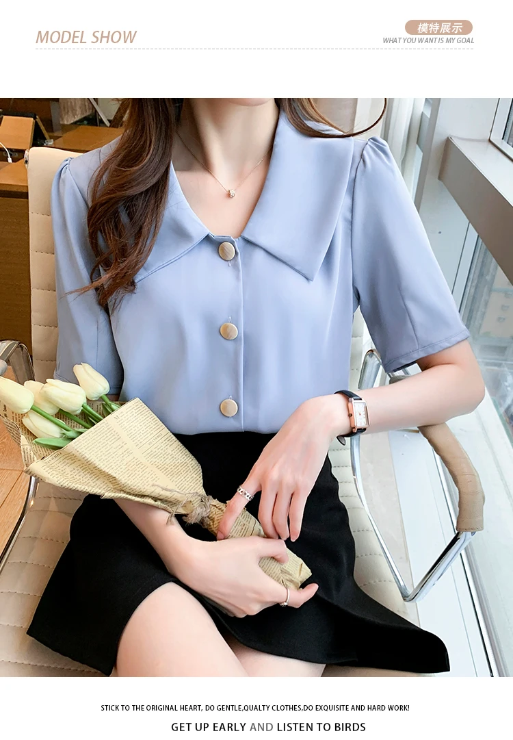 Summer Korean Women Shirts Woman Short Sleeve Blouse Women Chiffon Shirt Blouses Office Lady Pink Shirt Tops Plus Size XXL