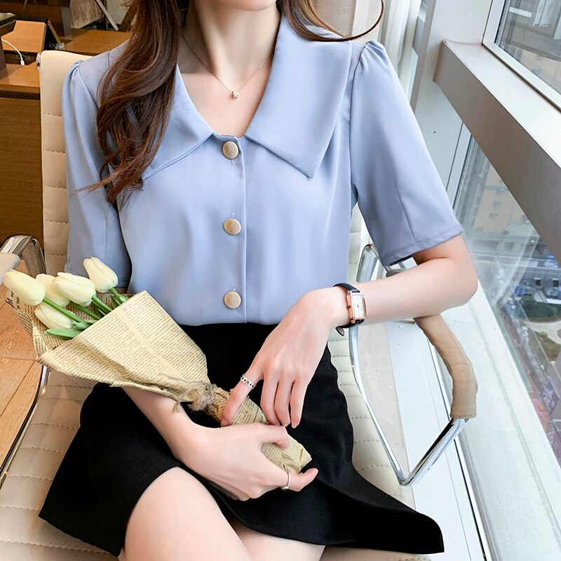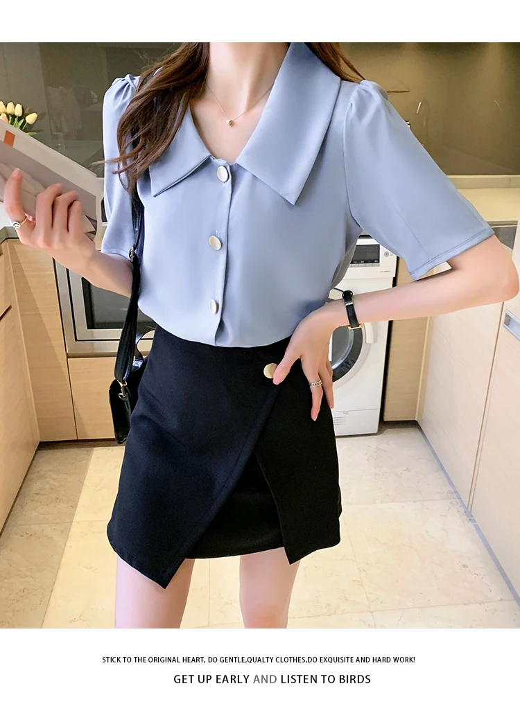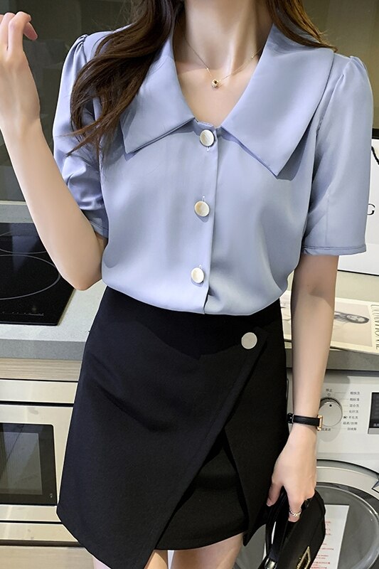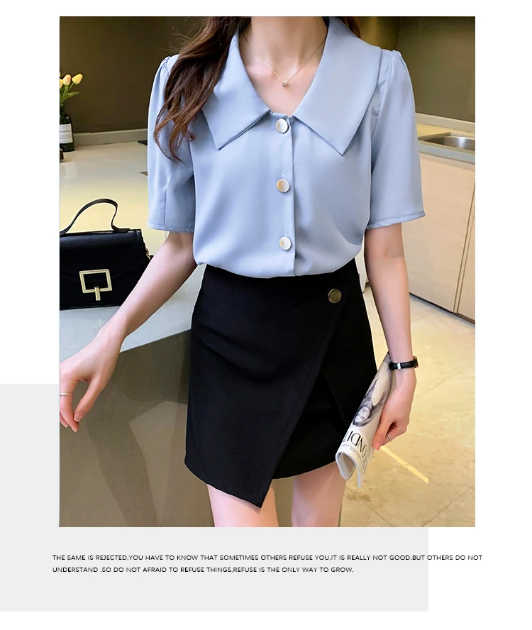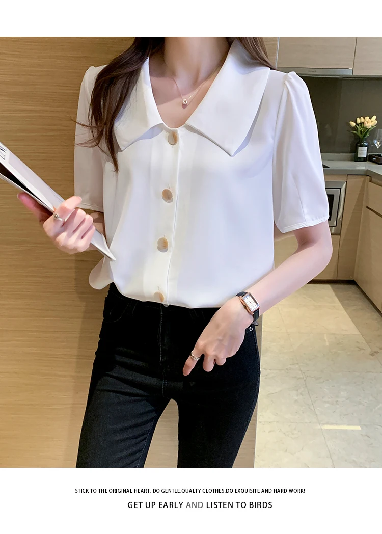 Summer Korean Women Shirts Woman Short Sleeve Blouse Women Chiffon Shirt Blouses Office Lady Pink Shirt Tops Plus Size XXL