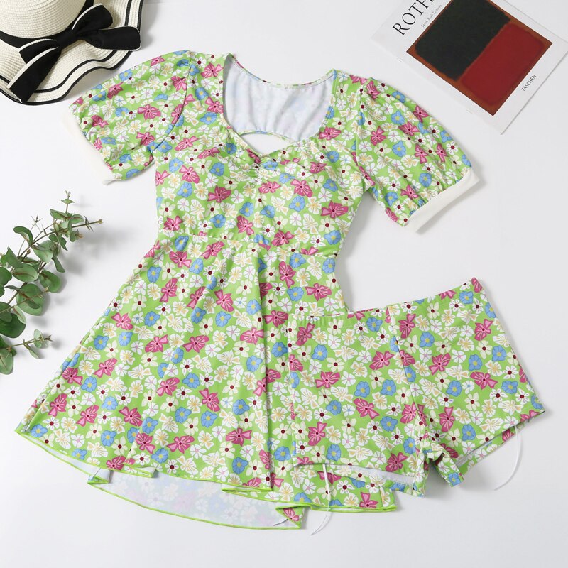 Swimdress Swimsuit for Women Swimwear with Shorts Green Blue Lovely Bandage Bathing Suits Woman 2021 Plus Size Swim Wear M-5XL