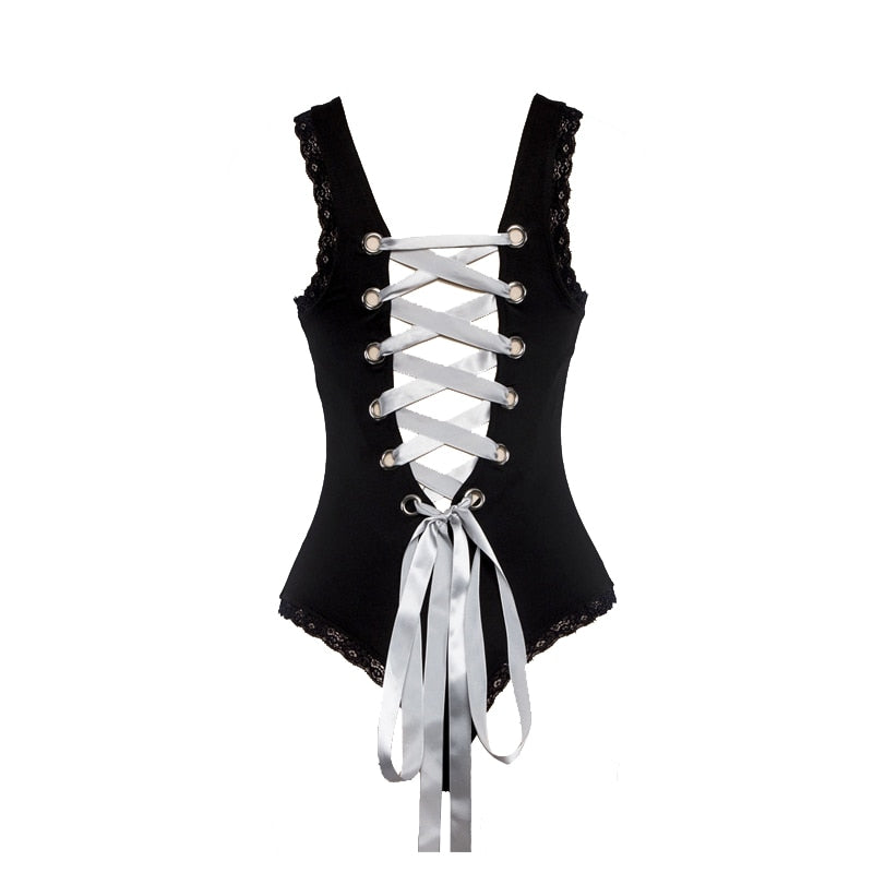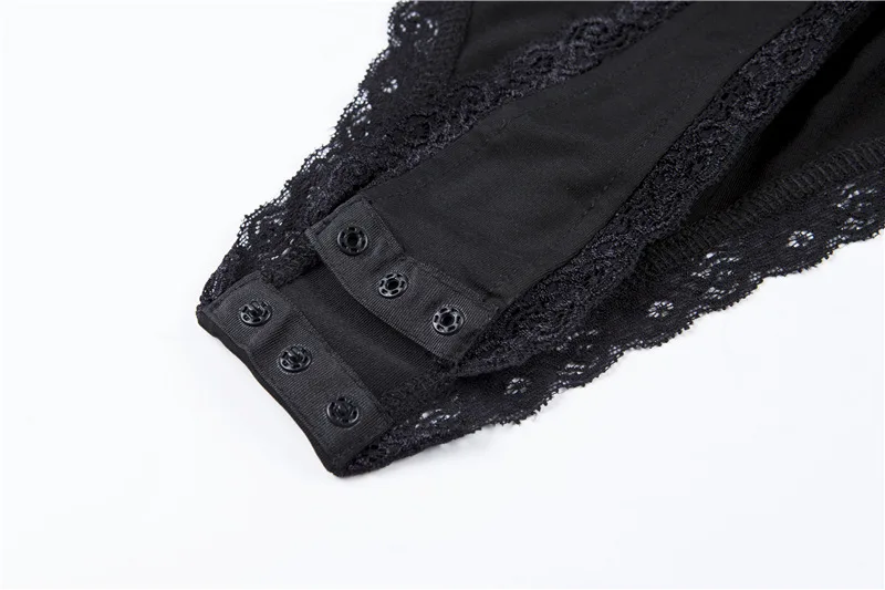 Ultra-thin Woman Lace Up Bodysuit Plus Size Lace High Neck Cut Out Back Fitness Bodycon Jumpsuit Body Manche Longue Femme