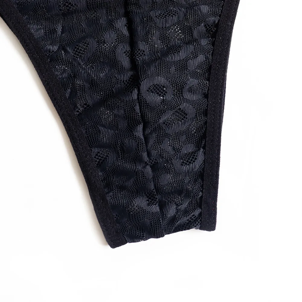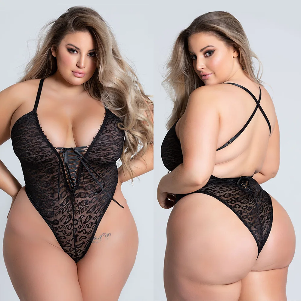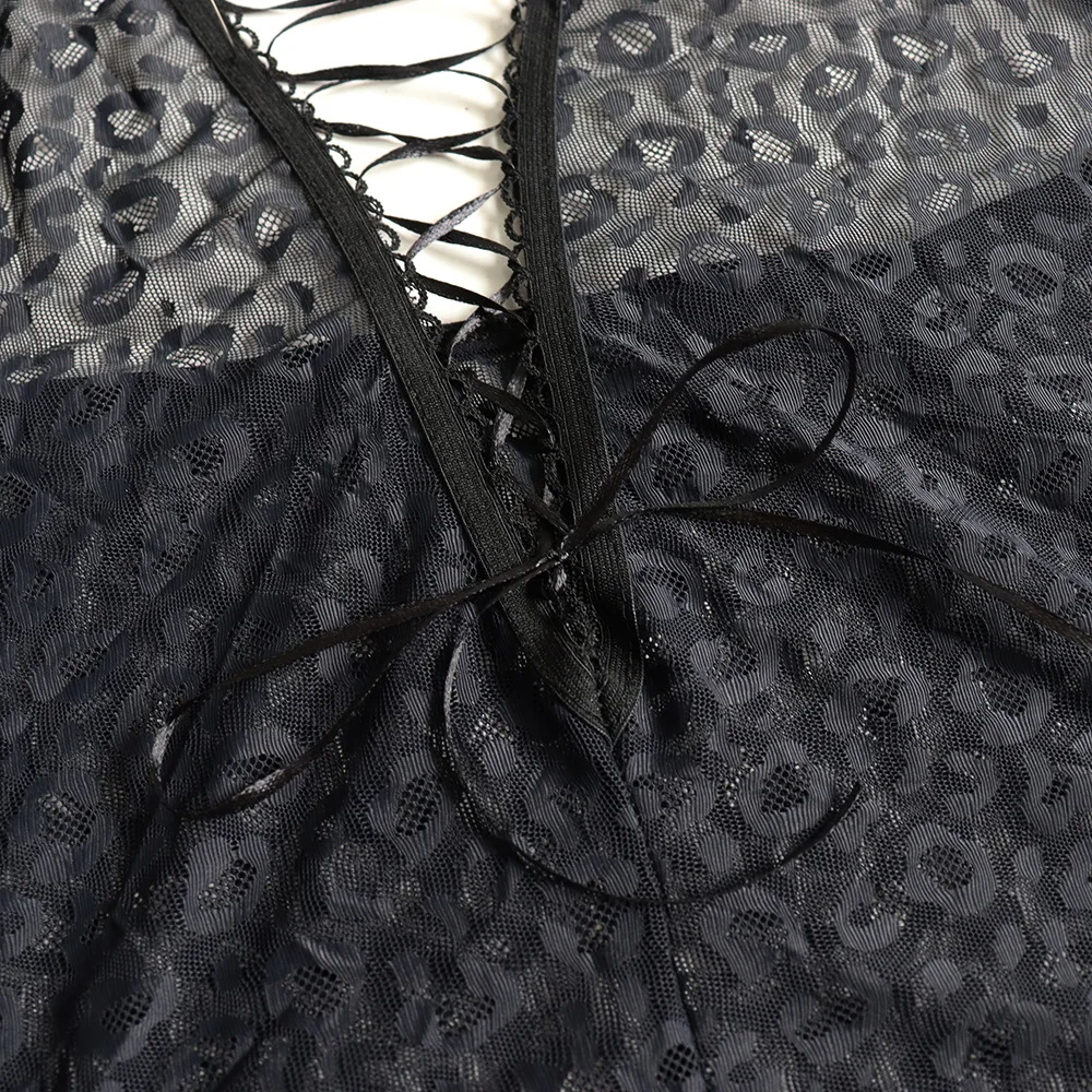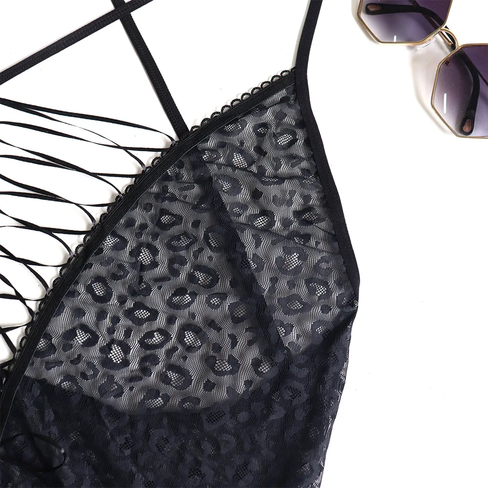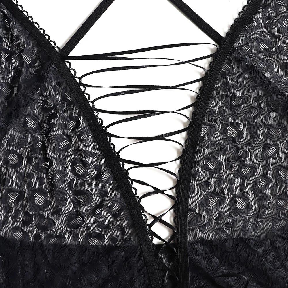 Women Costume Leopard Sexy Bodysuit Lace Mesh Bandage One-piece Sexy Pajamas for Ladies Plus Size