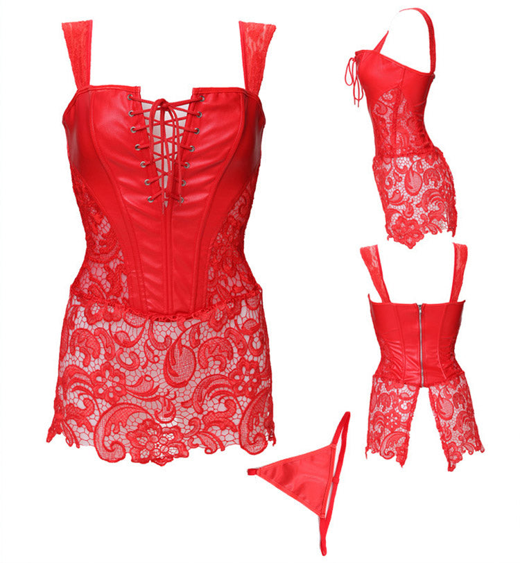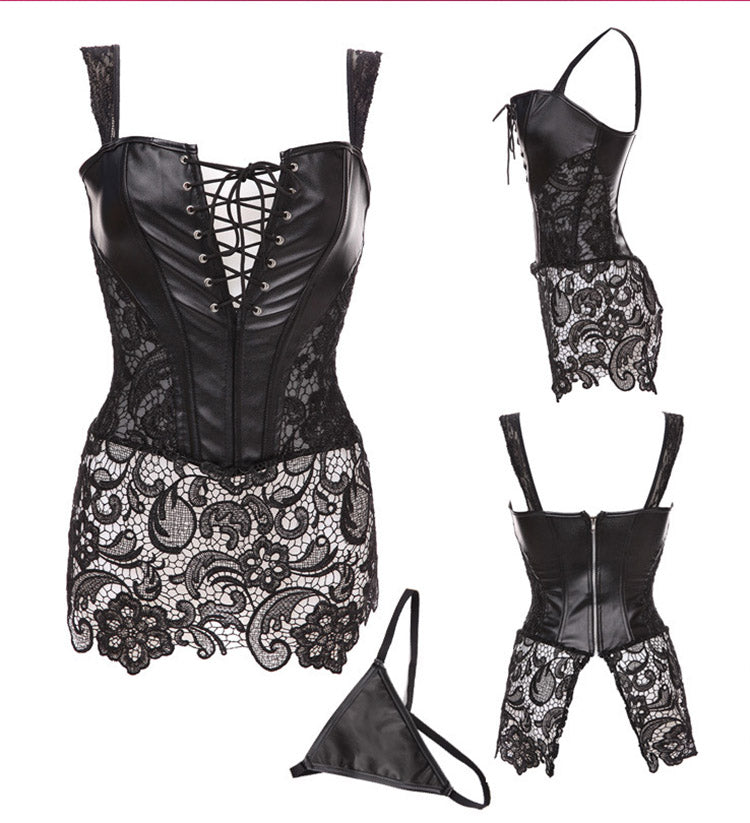 Female waist-lined body shaping tummy gothic corset with T-trousers