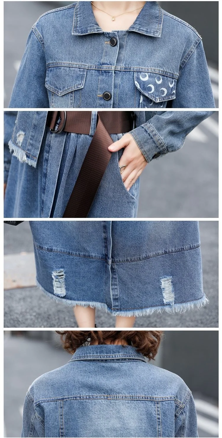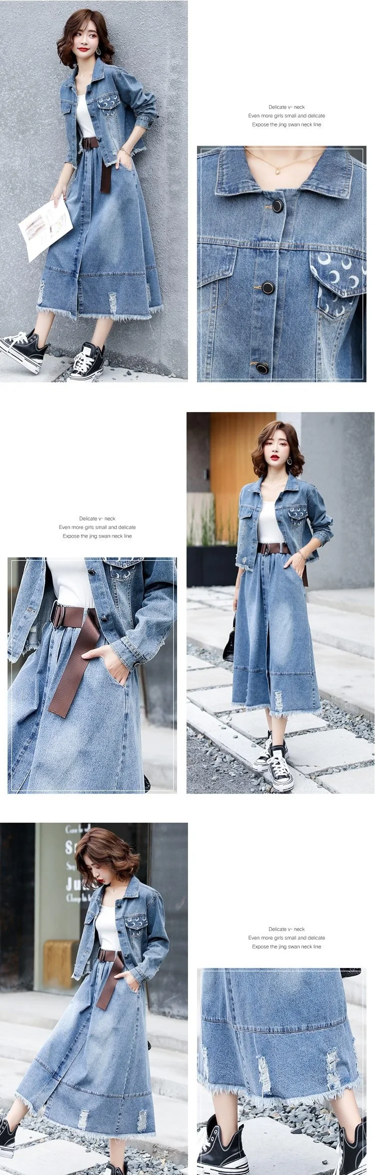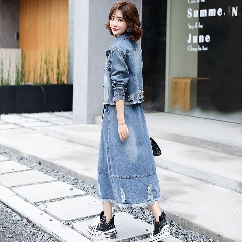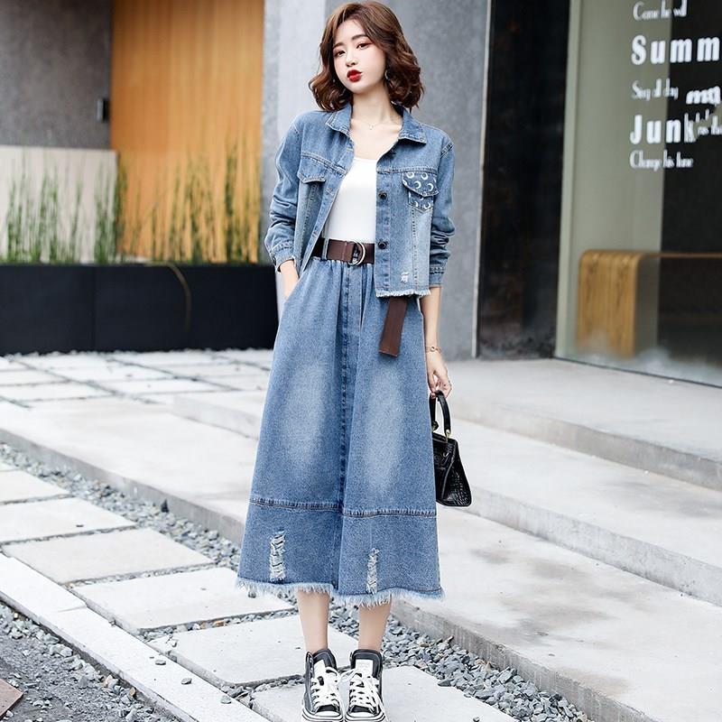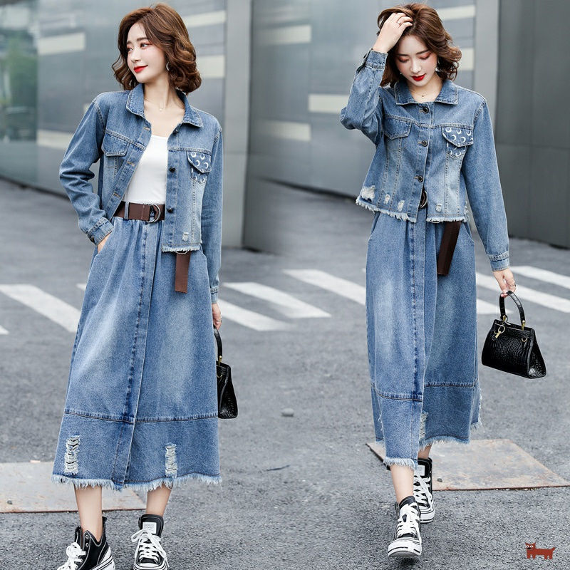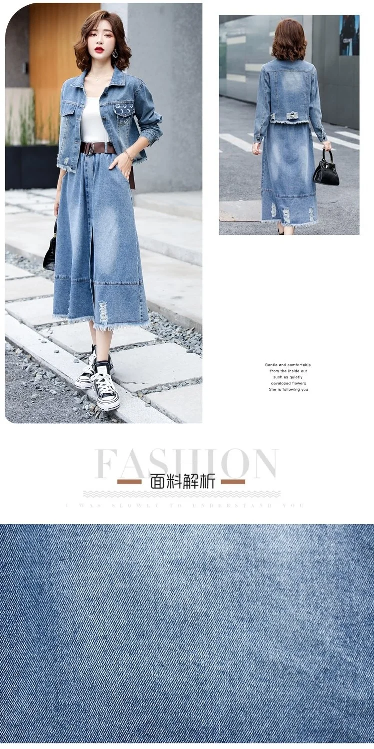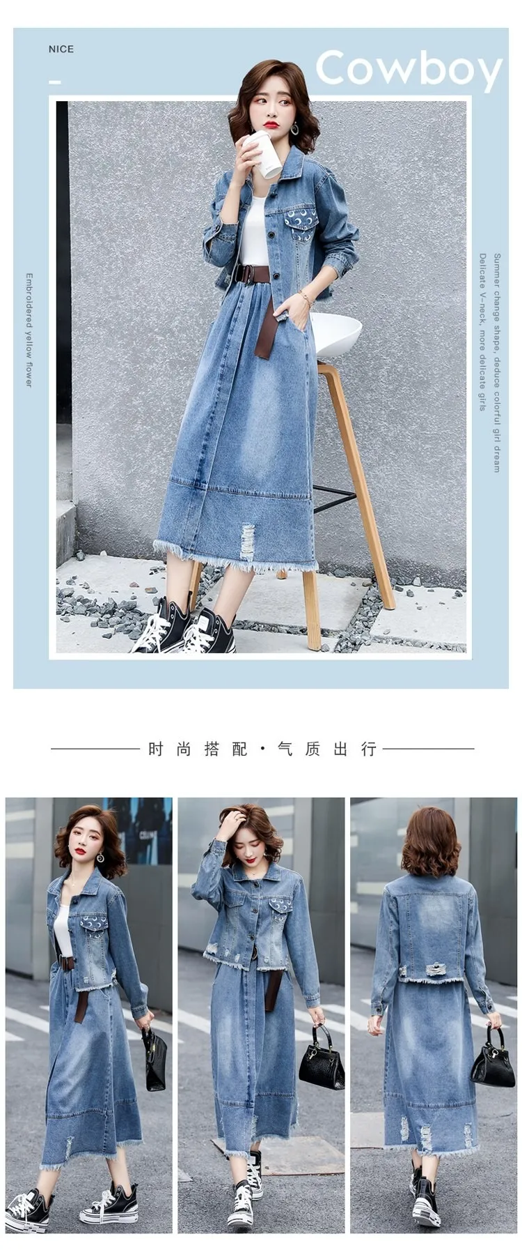 Women's Autumn Suits New Loose Casual Denim Short Jacket + High Waist Skirt 2-Piece Sets Female Plus Size S-2XL