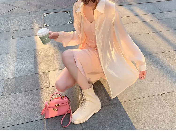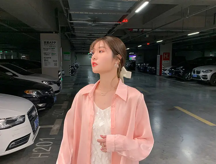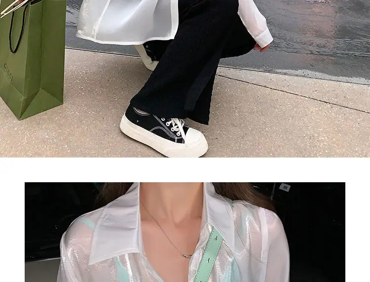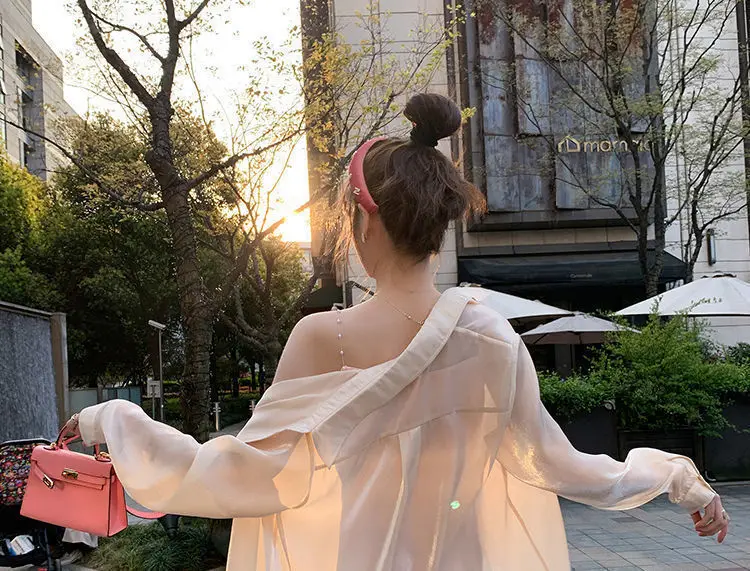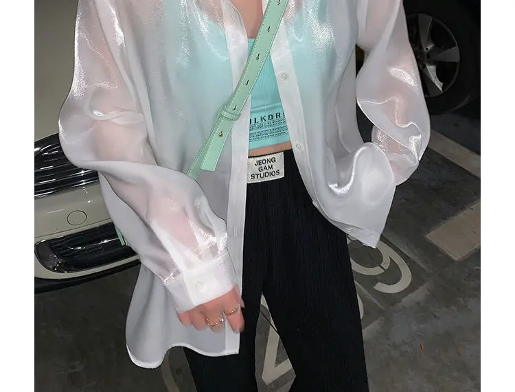 Women's White Blouse Chiffon Loose Long Sleeve T-Shirts Oversize Bling Fashion Elegant 2021 Summer Thin Chic Pink Plus Size