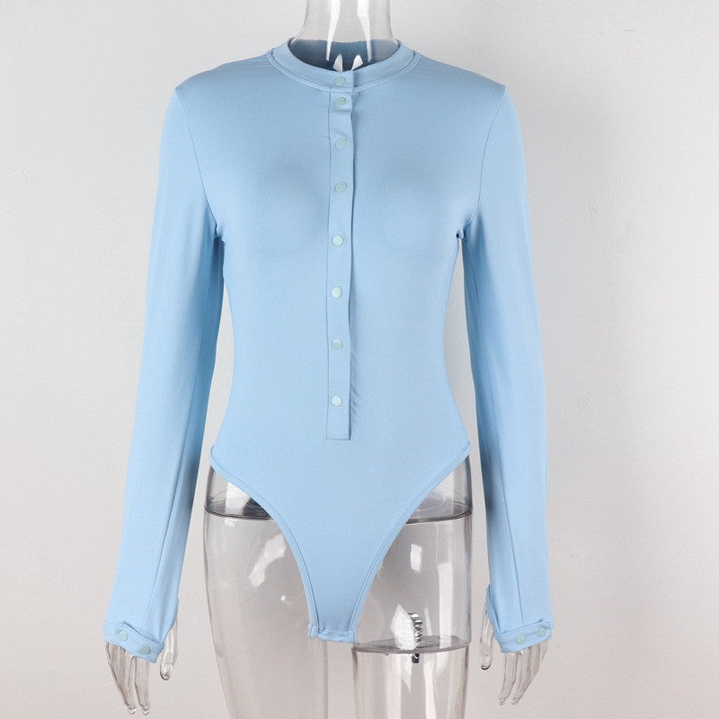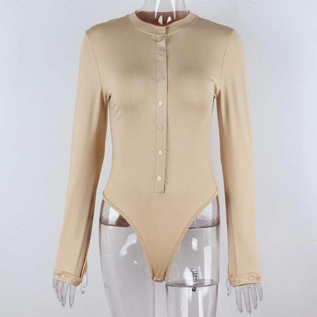 CNYISHE 2020 Fashion Casual Button Rompers Women Bodysuits Spring Long Sleeve O-neck Ribbed Skinny Jumpsuits Streetwear Body Top