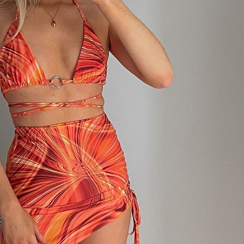 2021 Summer Vacation Women Sets 2 Pieces Bandage Halter Vest + Mini Skirt Print Suits Fashion New Female Sexy Tracksuits Costume