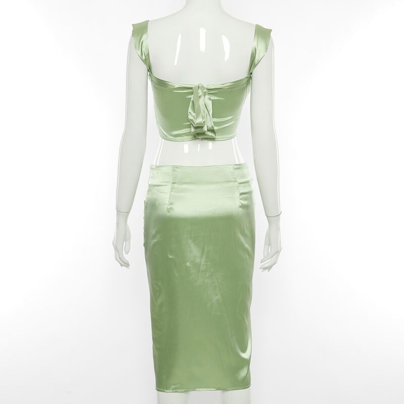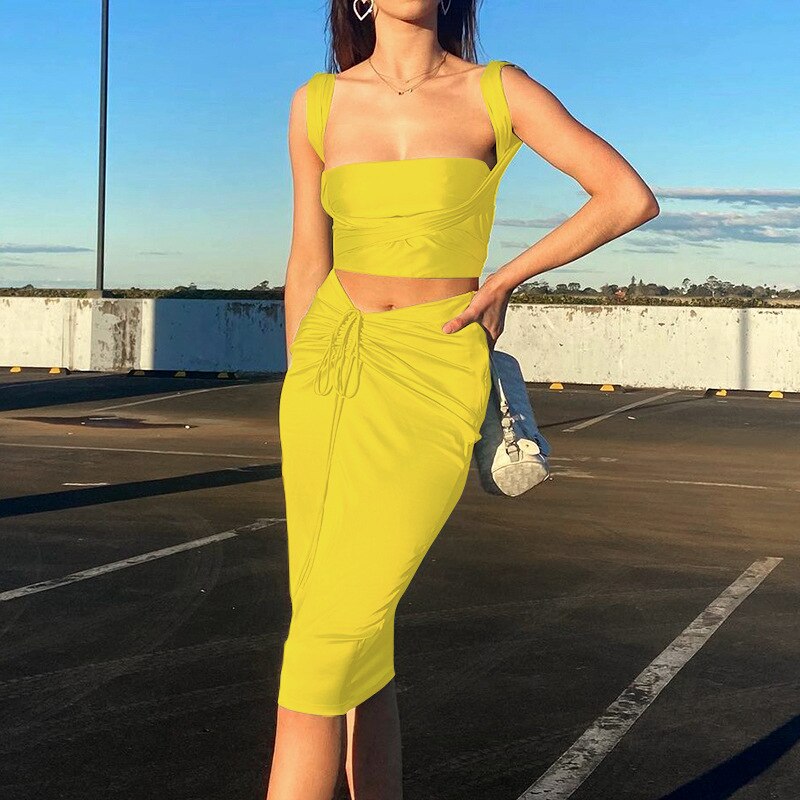 2021 Summer Women's Dress Suits Vest Lace-Up Crop Top Robe Midi Dress Sexy 2 Piece Set Women's Skirt Dress Sets Bodycon Outfits