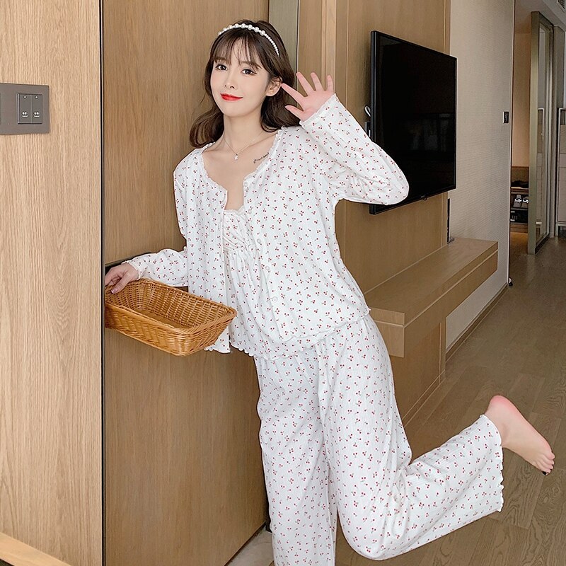 2022 Spring Autumn 3PCS Long Sleeve Cotton Pajama Sets For Women Korean Sexy Sleepwear Suit Pyjama Homewear Pijama Mujer Clothes