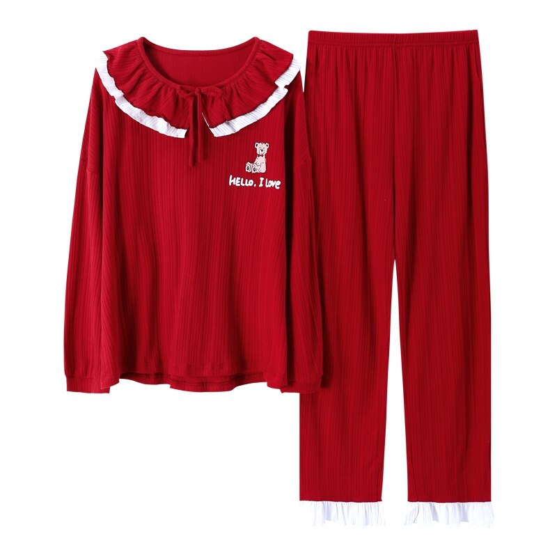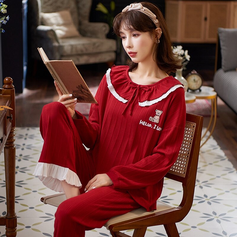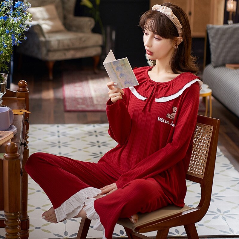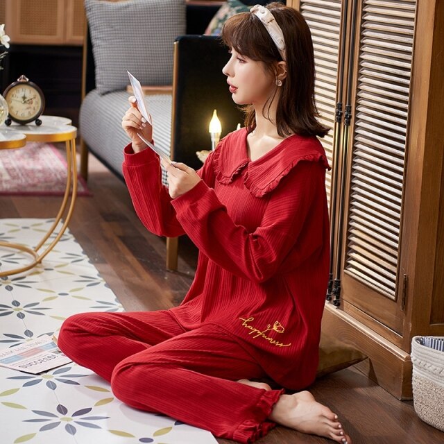 2022 Spring Autumn Long Sleeve Cotton Pajama Sets for Women Chinese Red Sleepwear Suit Pyjama Homewear Pijama Mujer Home Clothes