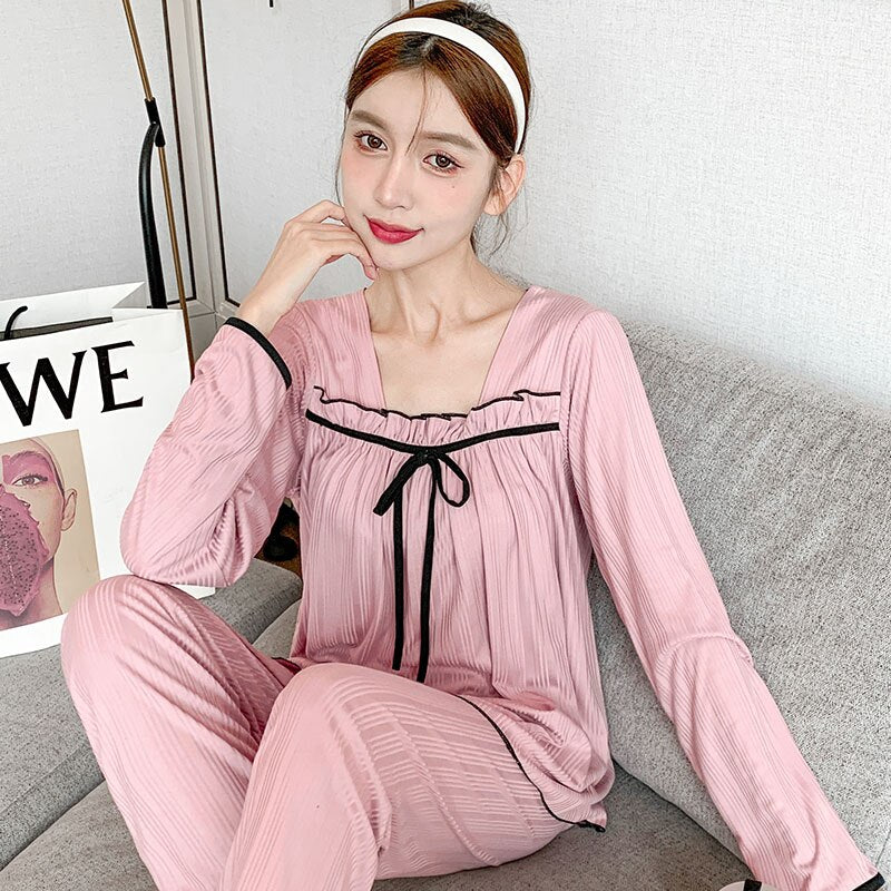 2022 Spring Autumn Long Sleeve Pajama Sets for Women Korean Cute Loose Sleepwear Suit Pyjamas Homewear Pijama Mujer Home Clothes