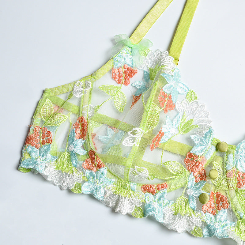 3 Pieces Set Sexy Lingerie Floral Embroidery Erotic Underwear Set Lace Perspective Push up Bra and Brief Sets Garters and Thongs
