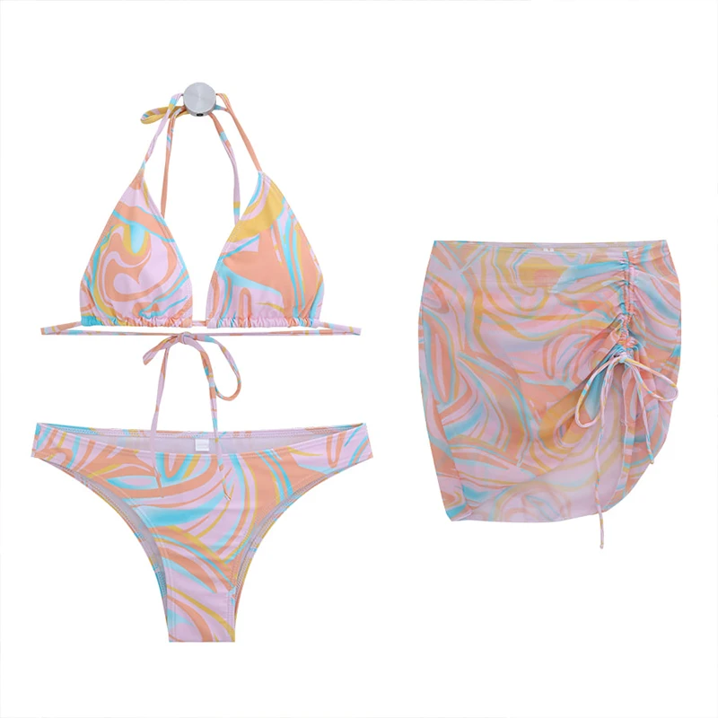 3sets Women's Bikini Set Low Waist Bathing Swimwear Swimsuit Removable Pad Beach Suit 2023 Koren Style Bathing Suit Women