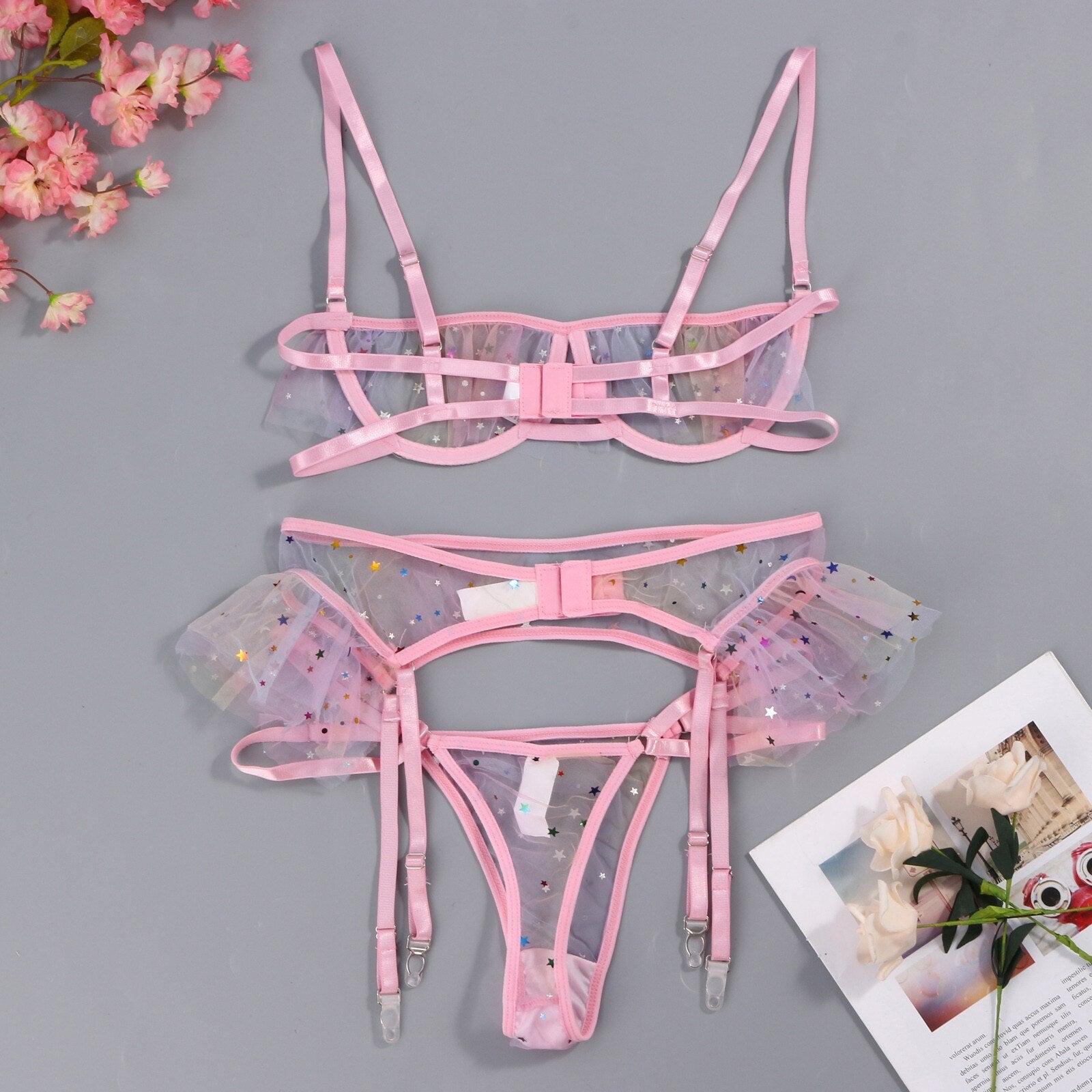 What you get:1 Set Women Underwear(1x steel ring bra 1x garter belt 1x thong)