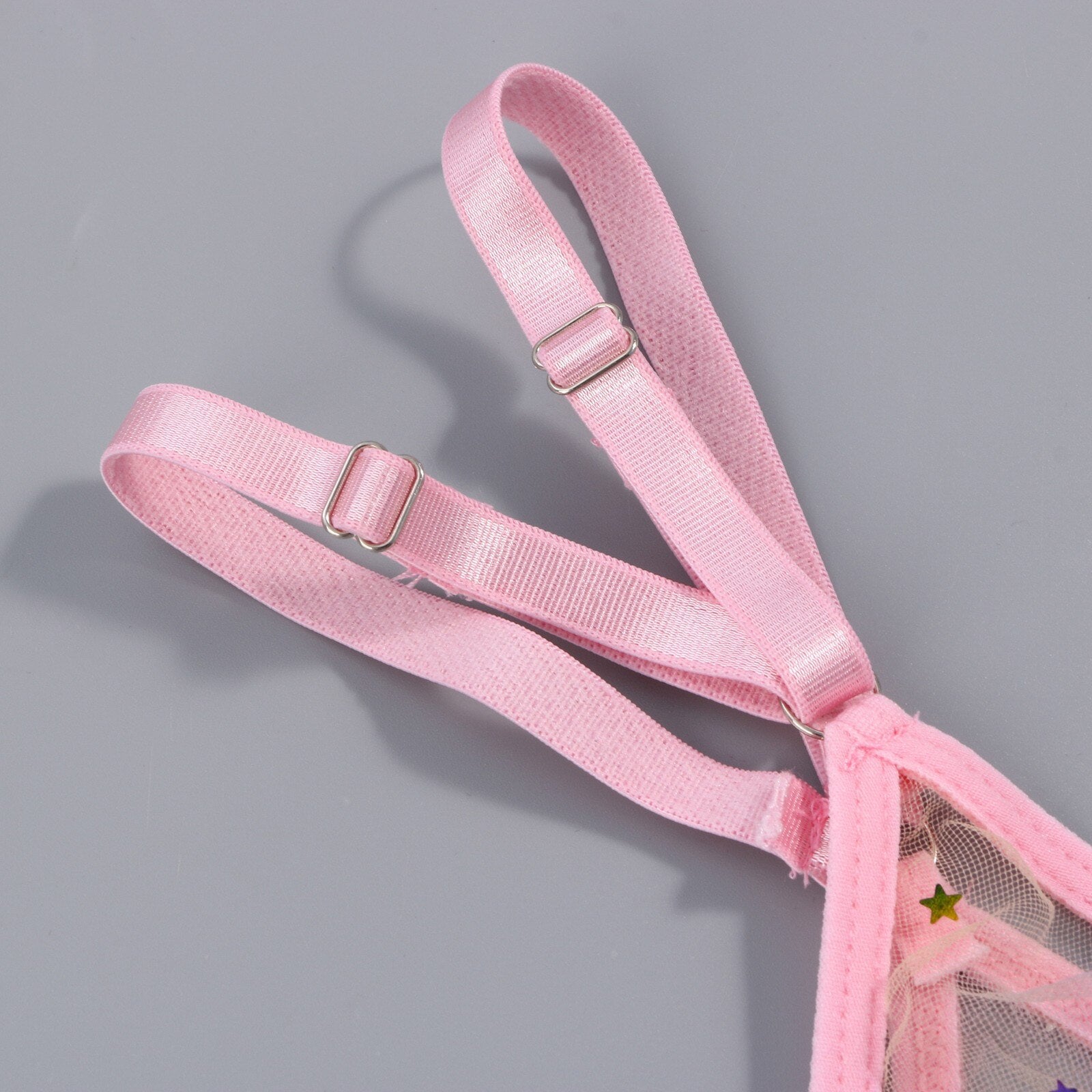 Colorful Printed Star Moon Embroidery Thong Temptation Underwear Garter Belt