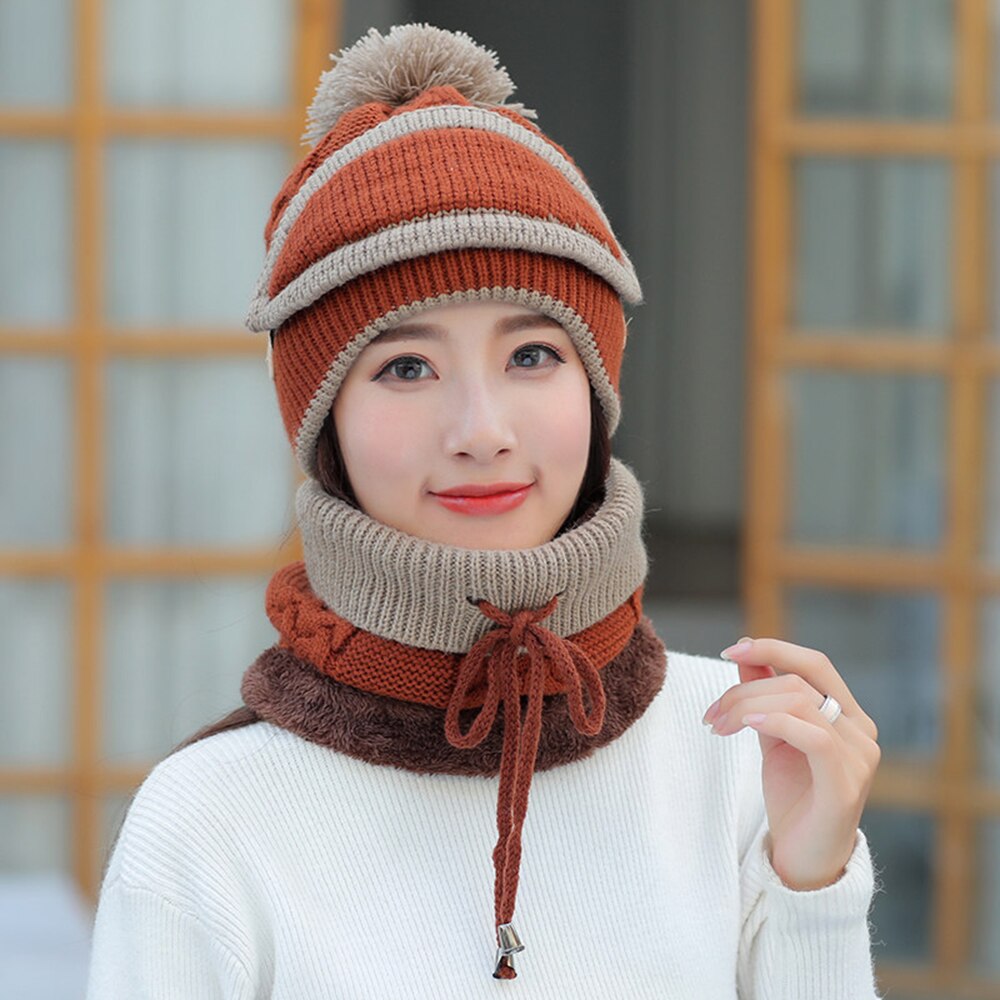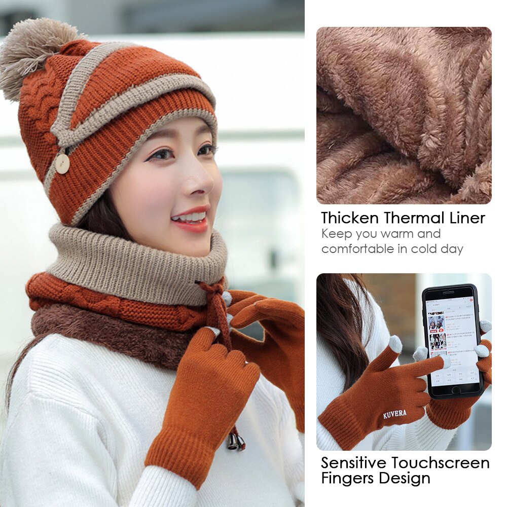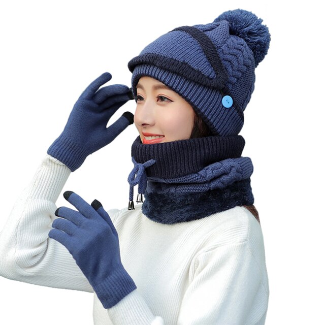 4PCS Women's Winter Cap Scarves Sets Neck Warm Scarf Cute Knitted Hat Gloves Set Skiing Warm Suit Christmas New Year Gifts