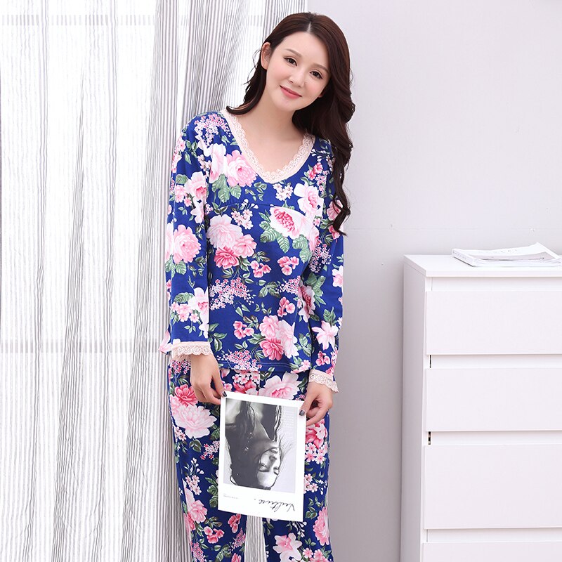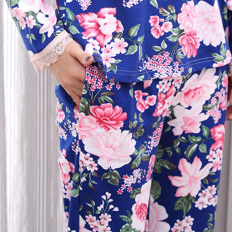 Autumn Winter Women Pajamas Beautiful Flower Print Pajama Sets Cotton Long Sleeve Sleepwear Women Homewear Pyjama Suit