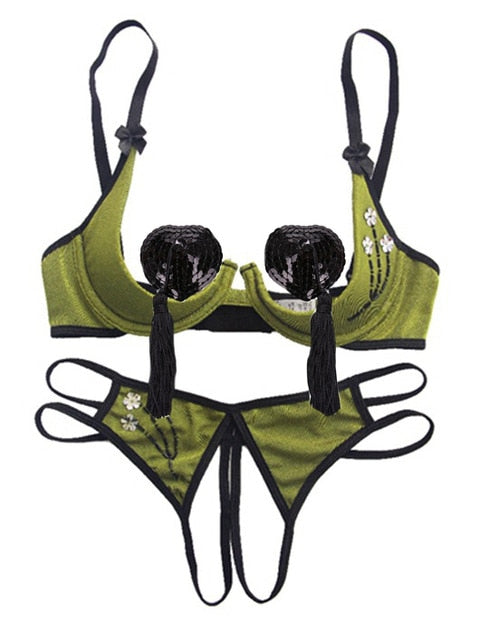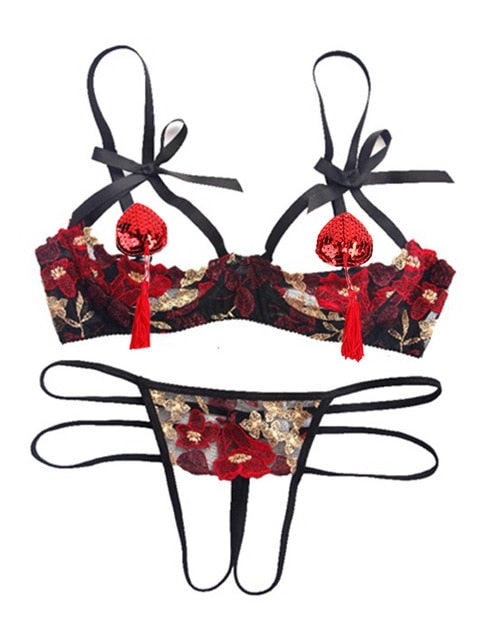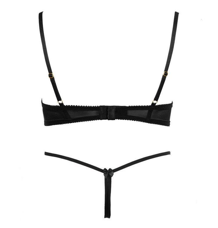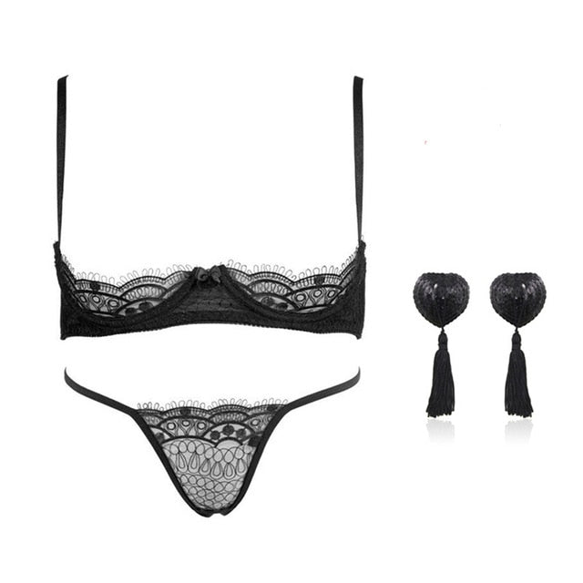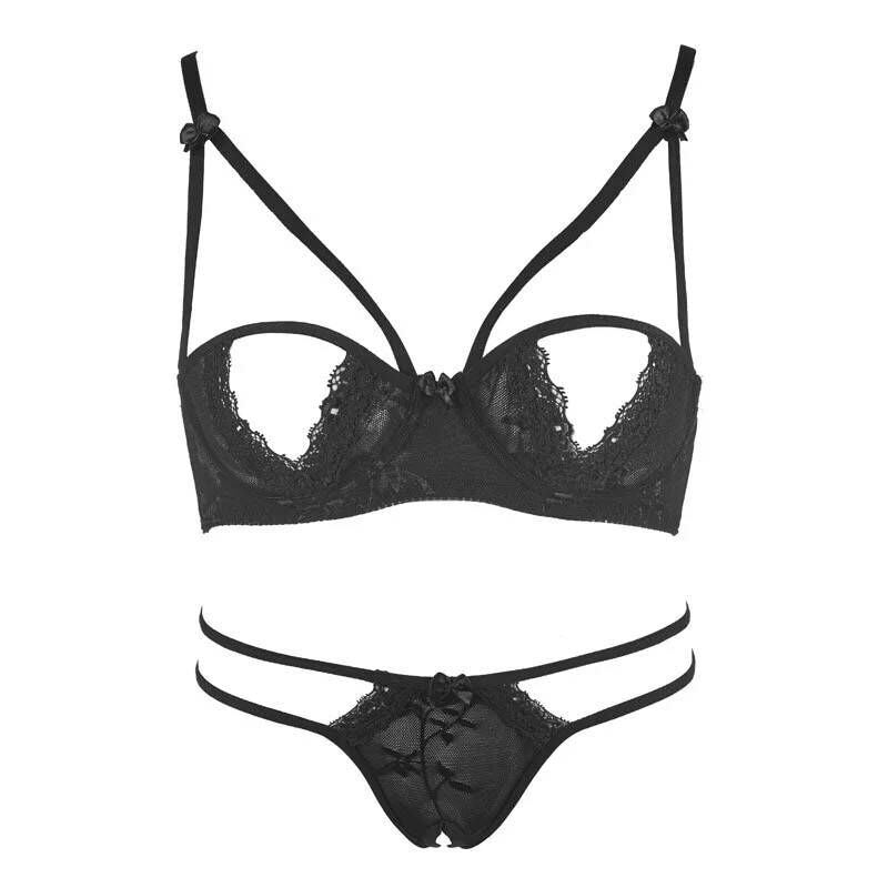 Black Eyelash Lace Women Underwear Temptation Thin Open Bra Panties Intimates Embroidery Bralette Panty Lingerie Sets