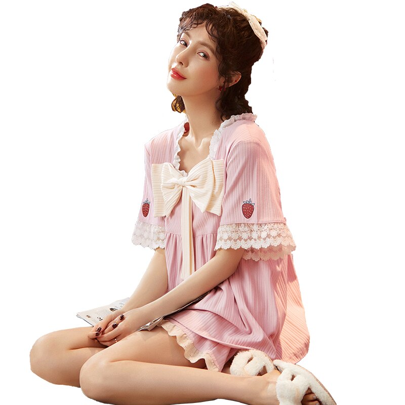 Cotton Home Suits M-XXL Sleepwear Strawberry Print Pajamas for Women Summer 2021 Pyjamas Girls Pijama Short and Short Sleeve