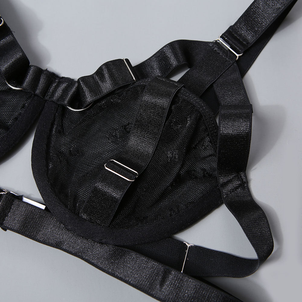 Gothic Patchwork Bra and Brief Sets Sexy Lingerie Mesh Underwear See-Through Erotic Garters Sensual Lingerie Exotic Outfits
