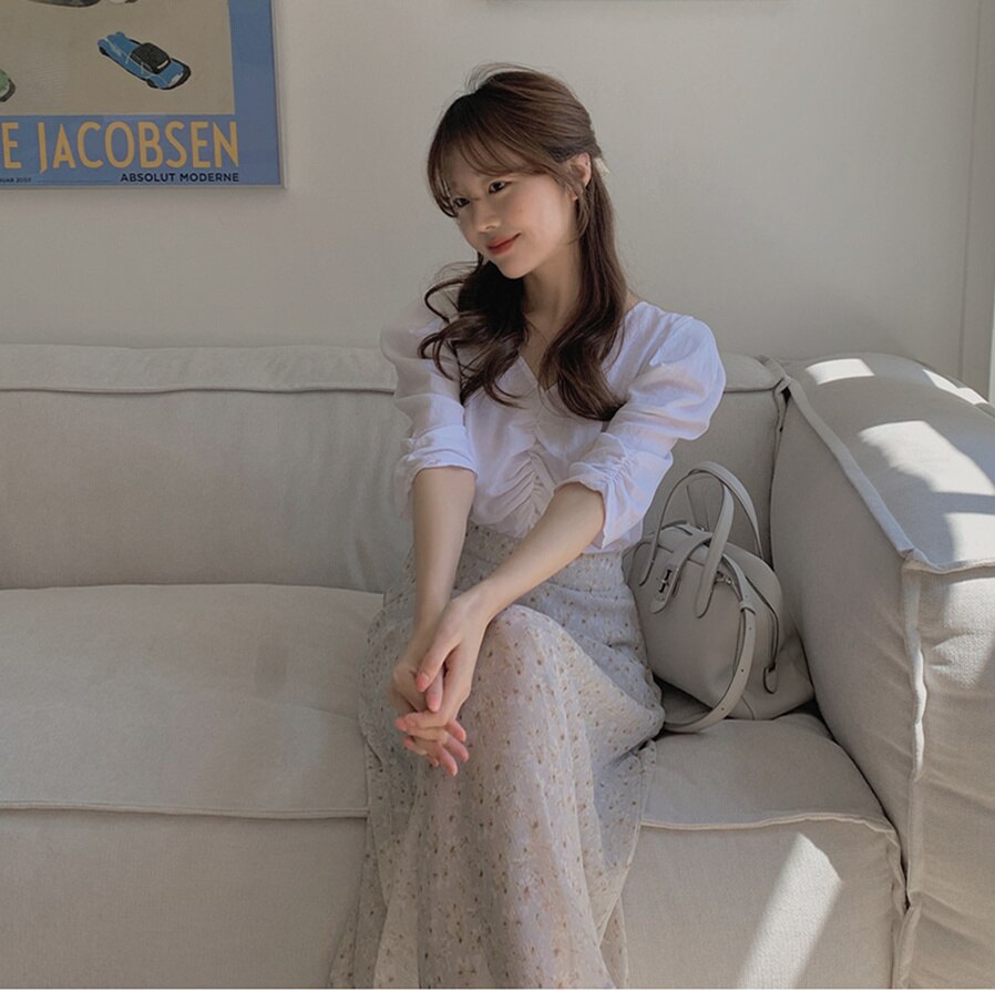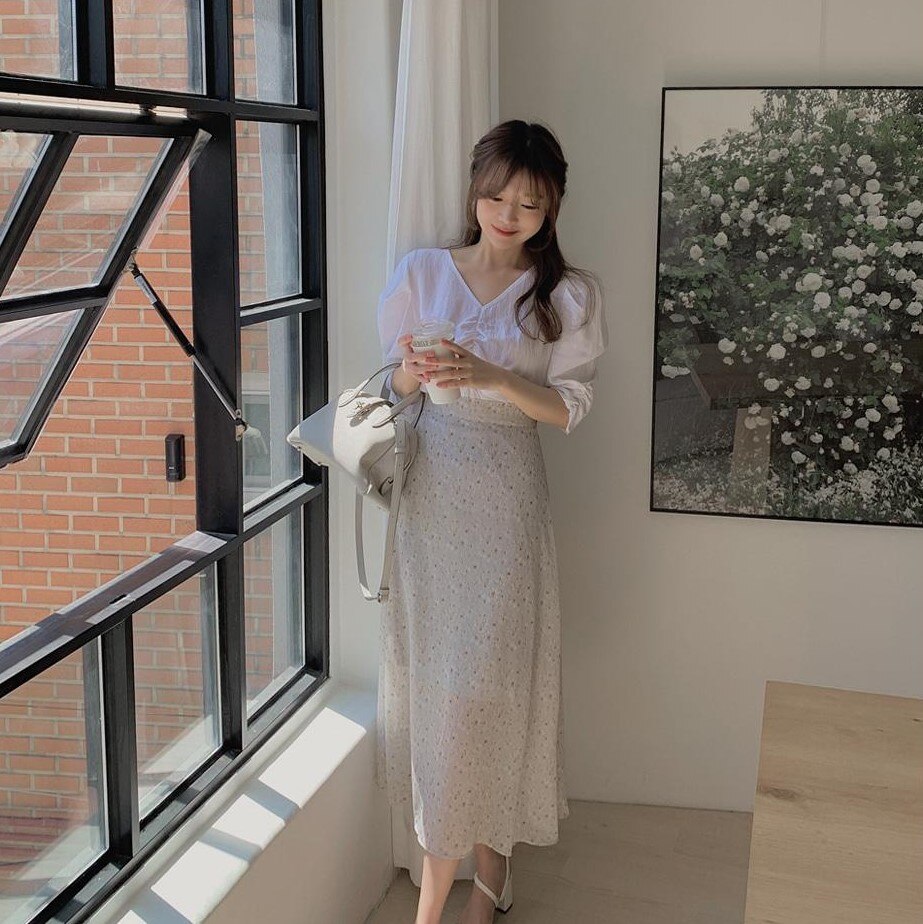 New Girls Summer Blouse Women Suit Shirt Short Sleeves Tops High Waist Long Print A Line Skirts Two Piece Suits Sell Separately