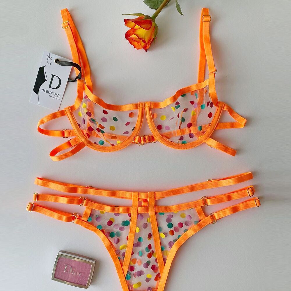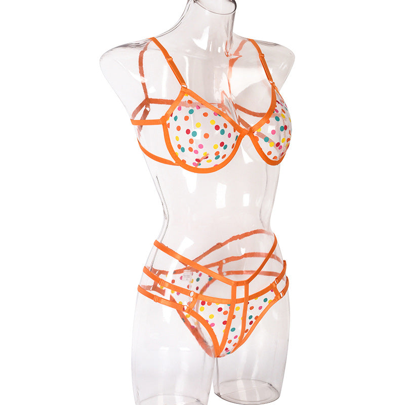 New Women Dot Print Sensual Lingerie Erotic Transparent Bra and Brief Set Underwear Lace Sexy Outfit Underwire Exotic Sets