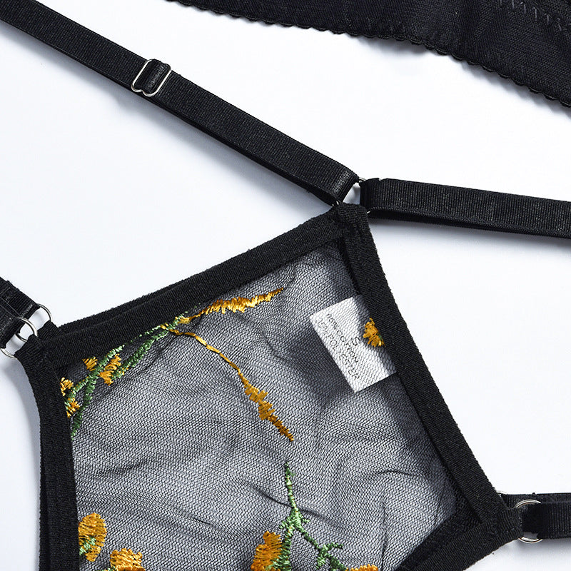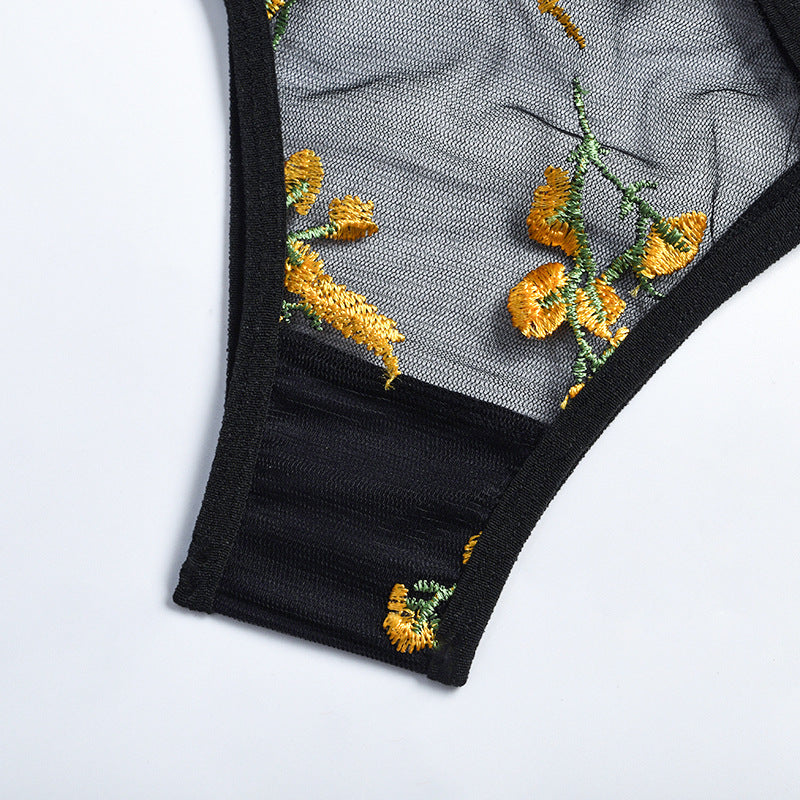 New Women Sexy Embroidery Sensual Lingerie Underwear Lace Erotic Underwire Bra and Brief Sets Transparent Exotic Underwear