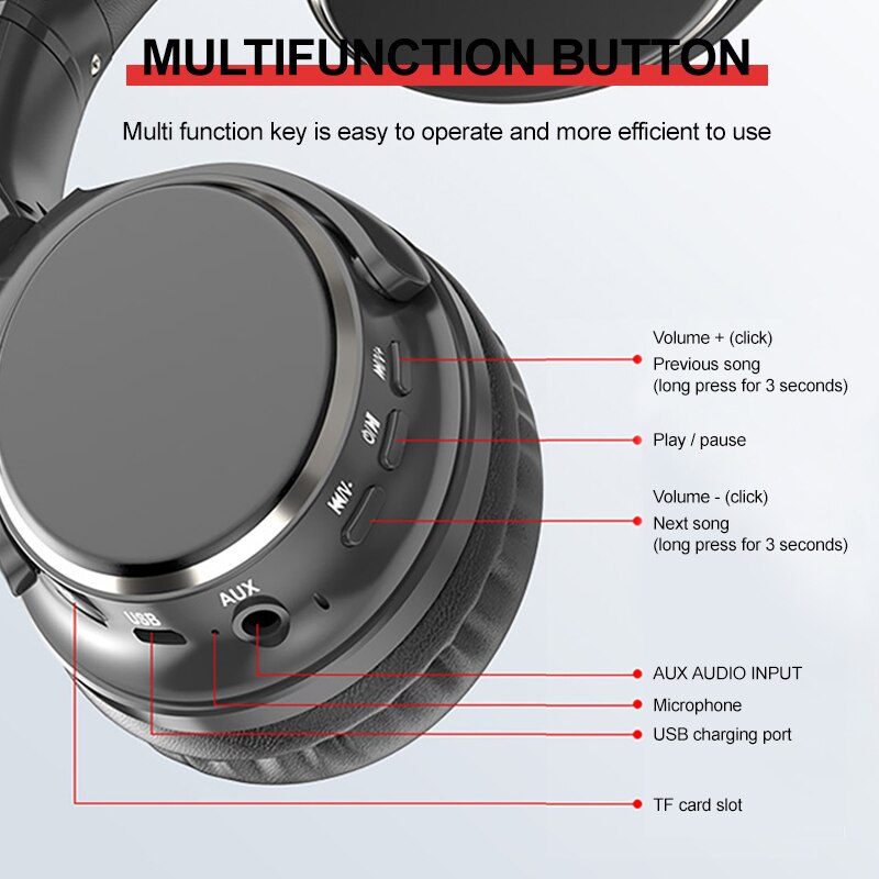 Noise Canceling Headphones Bluetooth Over Ear Wireless Earphone HIFI Stereo Gaming Headsets with Mic Support TF Card