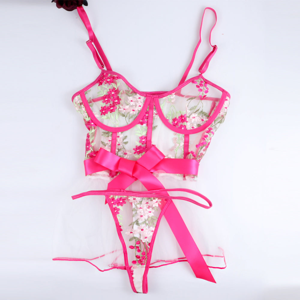 Sensual Lingerie Sexy Embroidery Sleepwear See-Through Hollow Out Bow Exotic Costumes Transparent Porn Lace Babydoll Exotic Sets